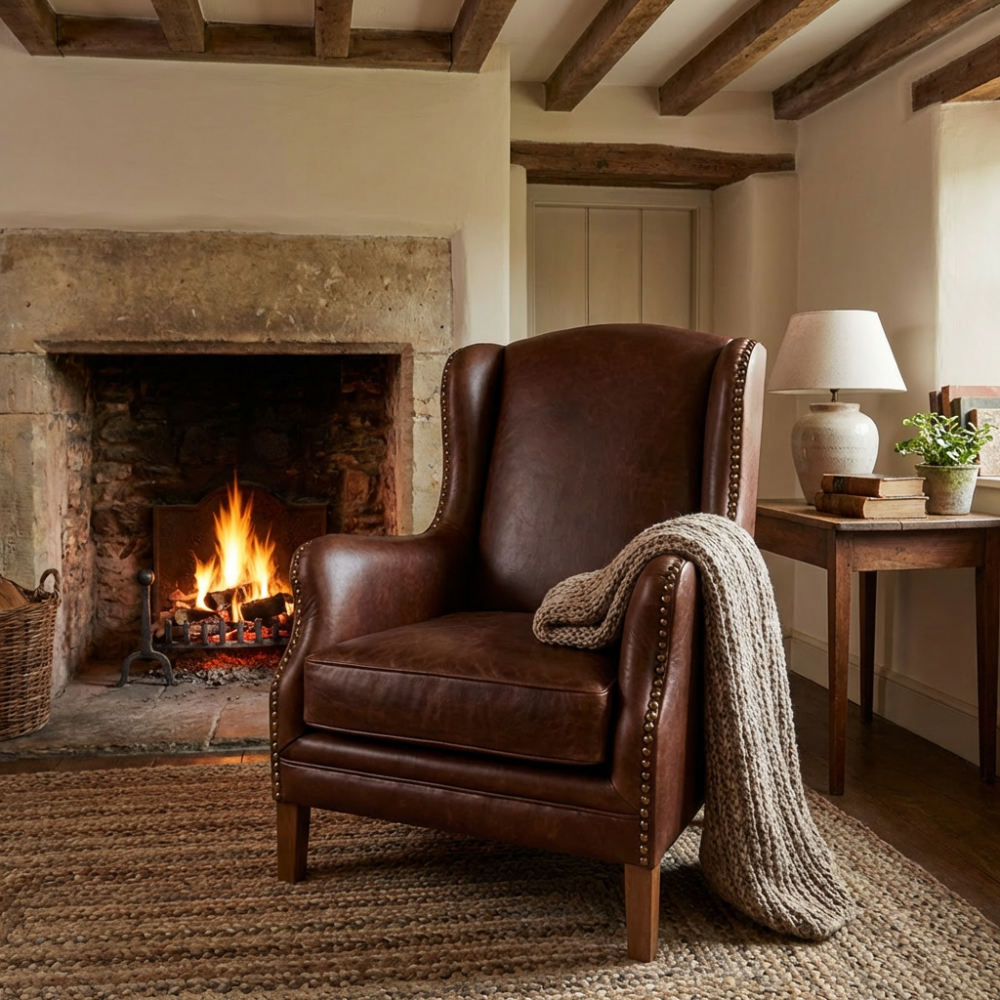 Alberto wąski fotel w skórze naturalnej