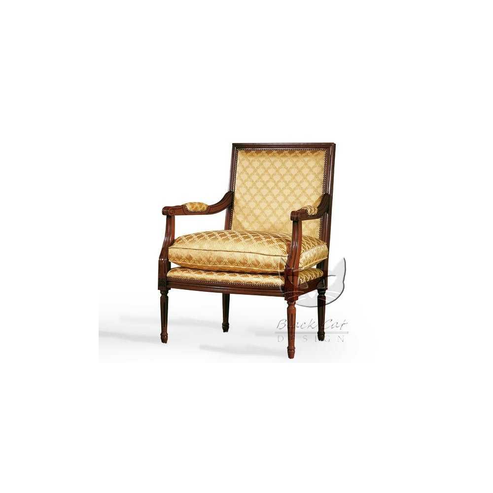 Luigi – fotel z prostym oparciem sprawdzi się świetnie w dowolnym salonie, jeśli tylko zagoszczą w nim inne stylizowane meble. Włoski projekt i oryginalne zdobienia na pewno nie zawiodą oczekiwań nawet tych najbardziej wymagających użytkowników.