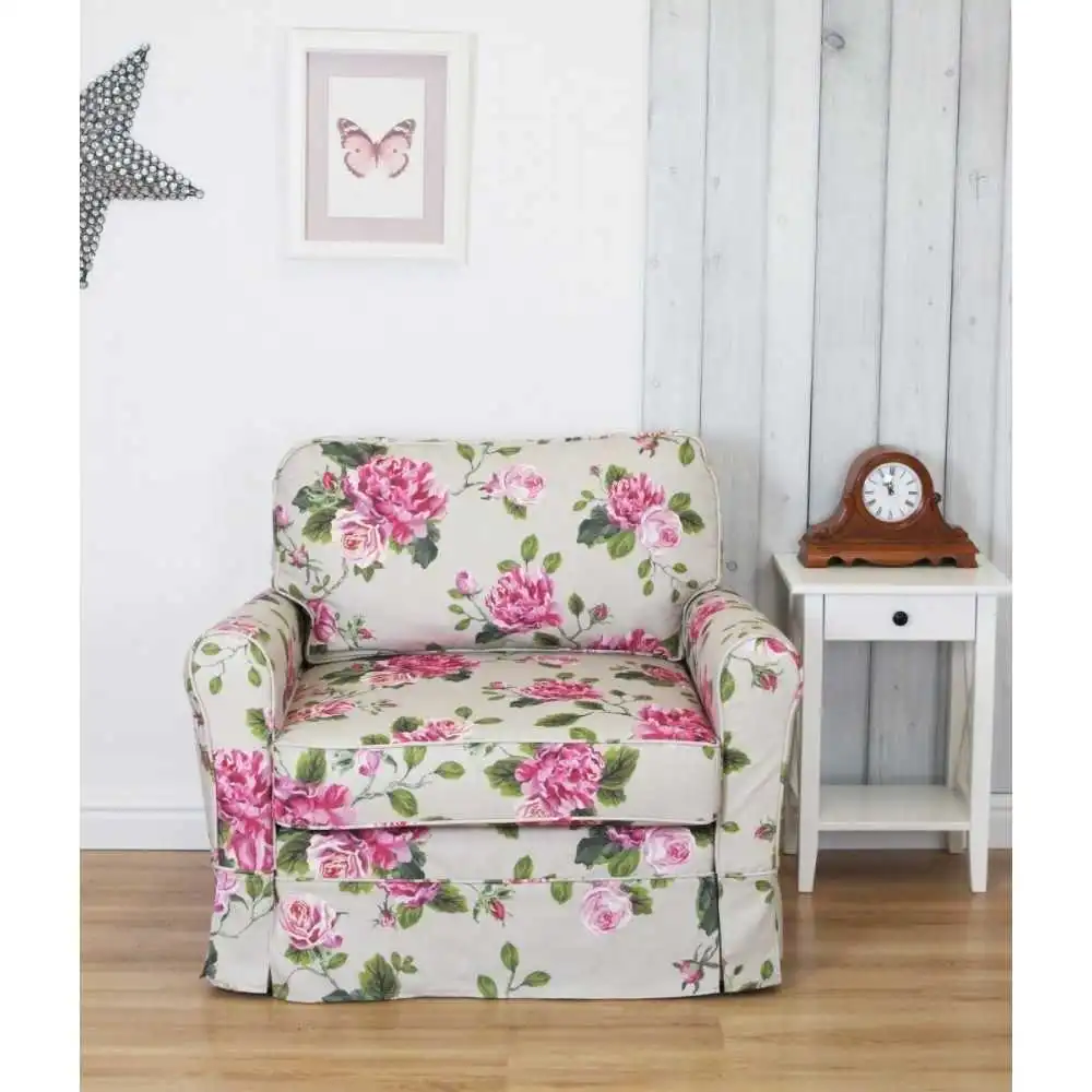 Prezentujemy malutką sofę Flower 110 w kwiaty z funkcją spania o szerokości całkowitej 110cm. Romantyczna kanapa w stylu vintage Flower 110 pasuje do salonu urządzonego w stylu prowansalskim i angielskim. Spodoba się miłośnikom romantycznych klimatów we wnętrzach. Tak niewielka sofa zmieści się do bardzo małego pomieszczenia, a przy tym jest niezwykle praktyczna – po rozłożeniu prezentuje powierzchnie do spania o wymiarach 80x200 cm. Będzie więc świetnym wyborem, jeśli potrzebujemy mebla wypoczynkowego, na którym będziemy mogli przenocować gości. Sofa Flower 110 posiada kwiecisty pokrowiec, który możemy całkowicie zdjęć i wyprać w pralce.