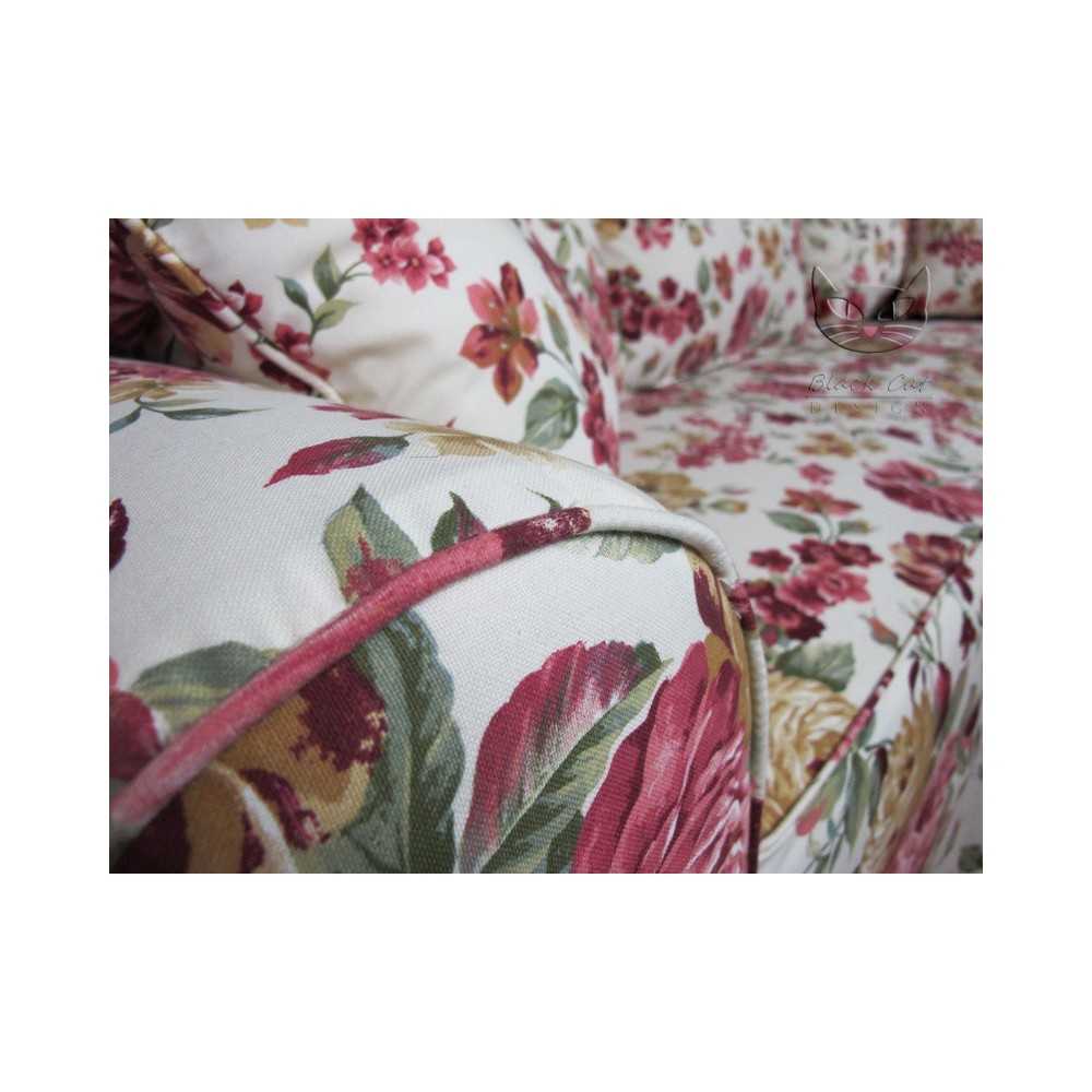 Piękna i bardzo wygodna sofa z funkcją spania w kwiaty Marie 246 to propozycja dla miłośnikiem stylu jak w książce „Duma i uprzedzenie”. Romantyczna sofa pasuje do salonu w klimatach angielskich i wiejskich. Duża sofa Marie 246 wyposażona została w funkcję spania o powierzchni 140x200cm. Dzięki temu możemy przenocować na niej gości. Zdejmowany pokrowiec możemy wyprać w pralce, zatem żadna plama nam niestraszna. Prezentowana sofa Marie ma szerokość całkowitą aż 246cm, będzie więc odpowiednia dla wypoczynku dla trzech osób. Ma bardzo miękkie i wygodne siedziska oraz poduchowe oparcia, a także szerokie boki będące wygodnymi podłokietnikami.