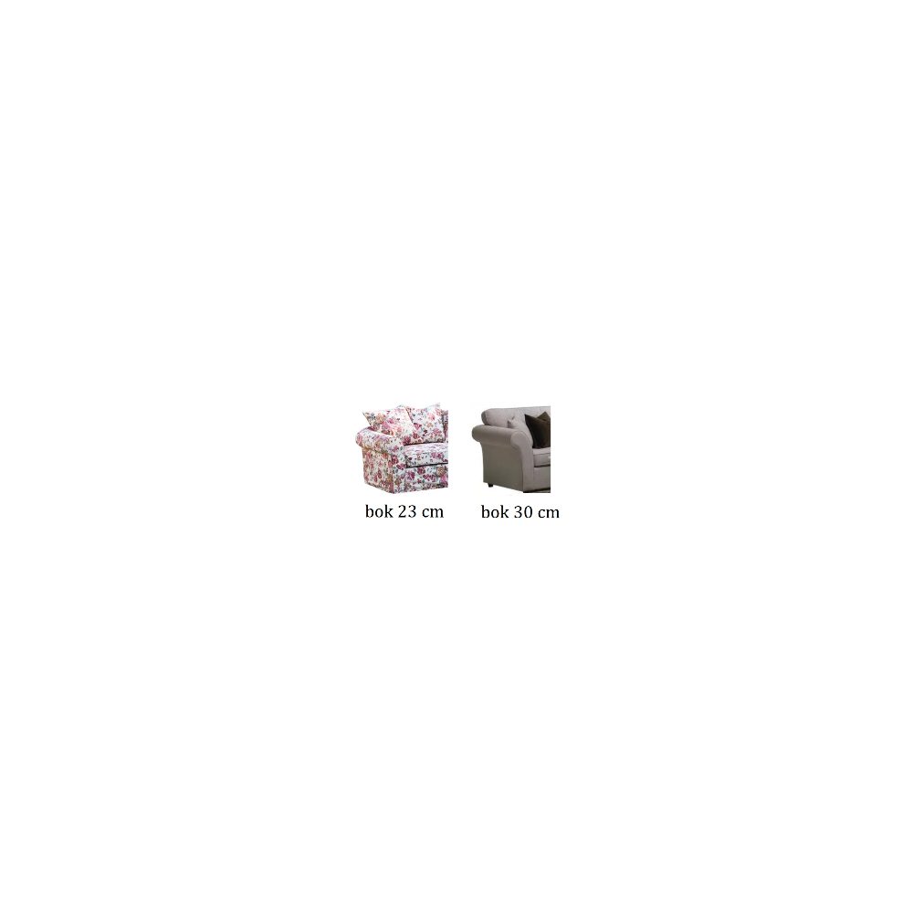 Meble z luźnym pokrowcem i falbaną dostępne wyłącznie w tkaninie. Bryły ze stałym pokrowcem bez falbany dostępne również w skórze naturalnej.