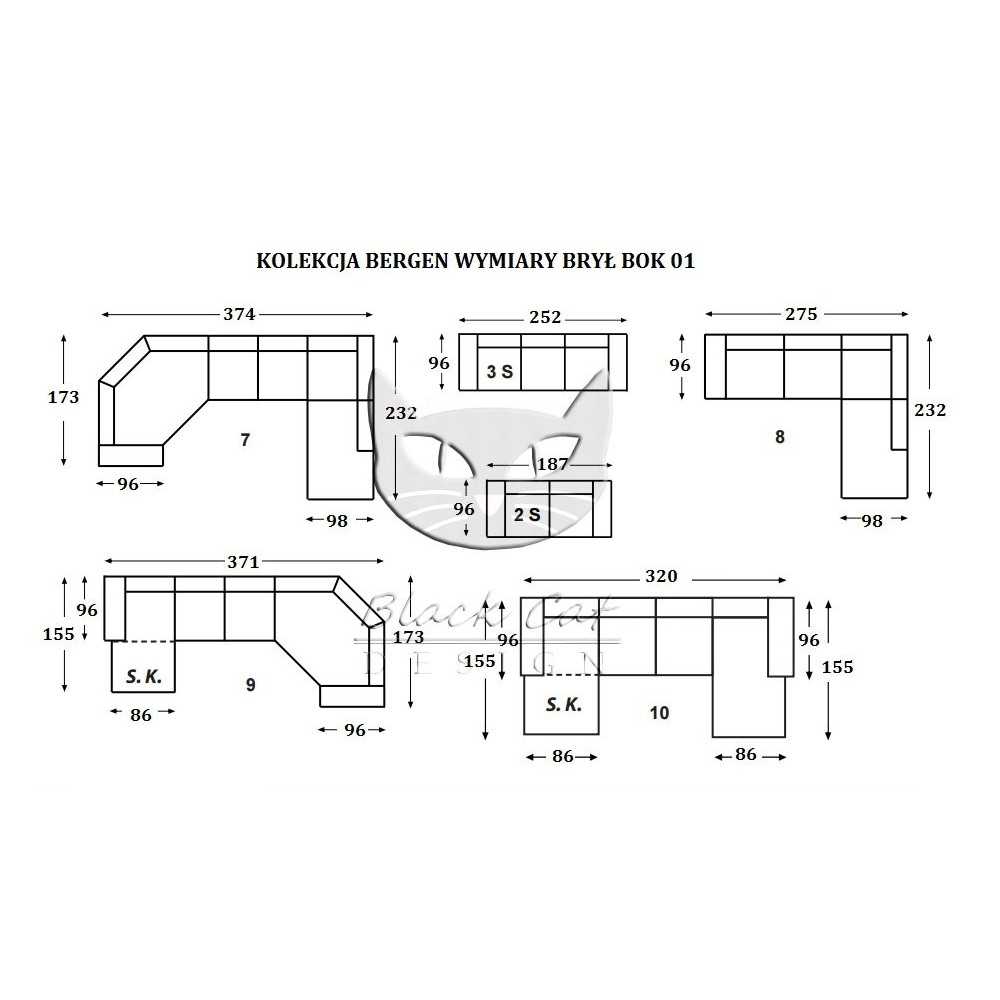 szerokość boku z dwoma poduchami 232 cm