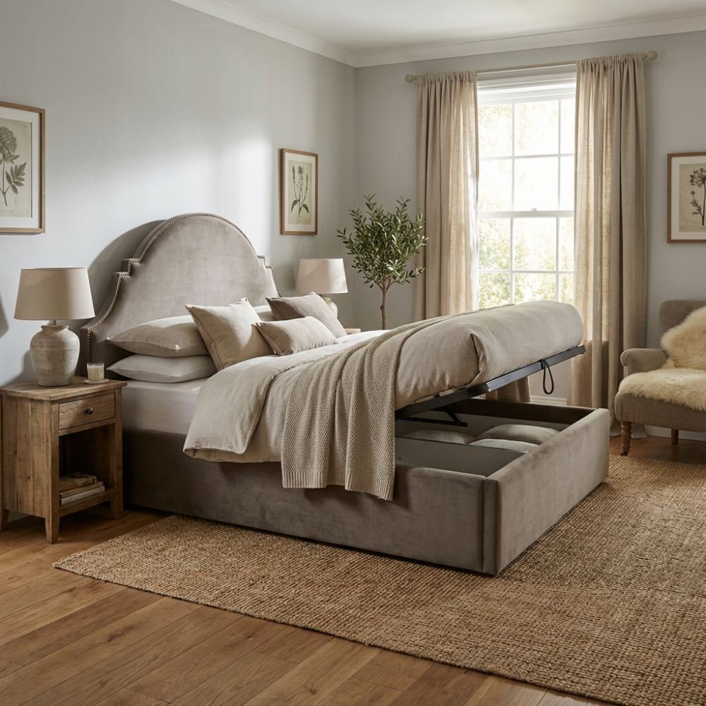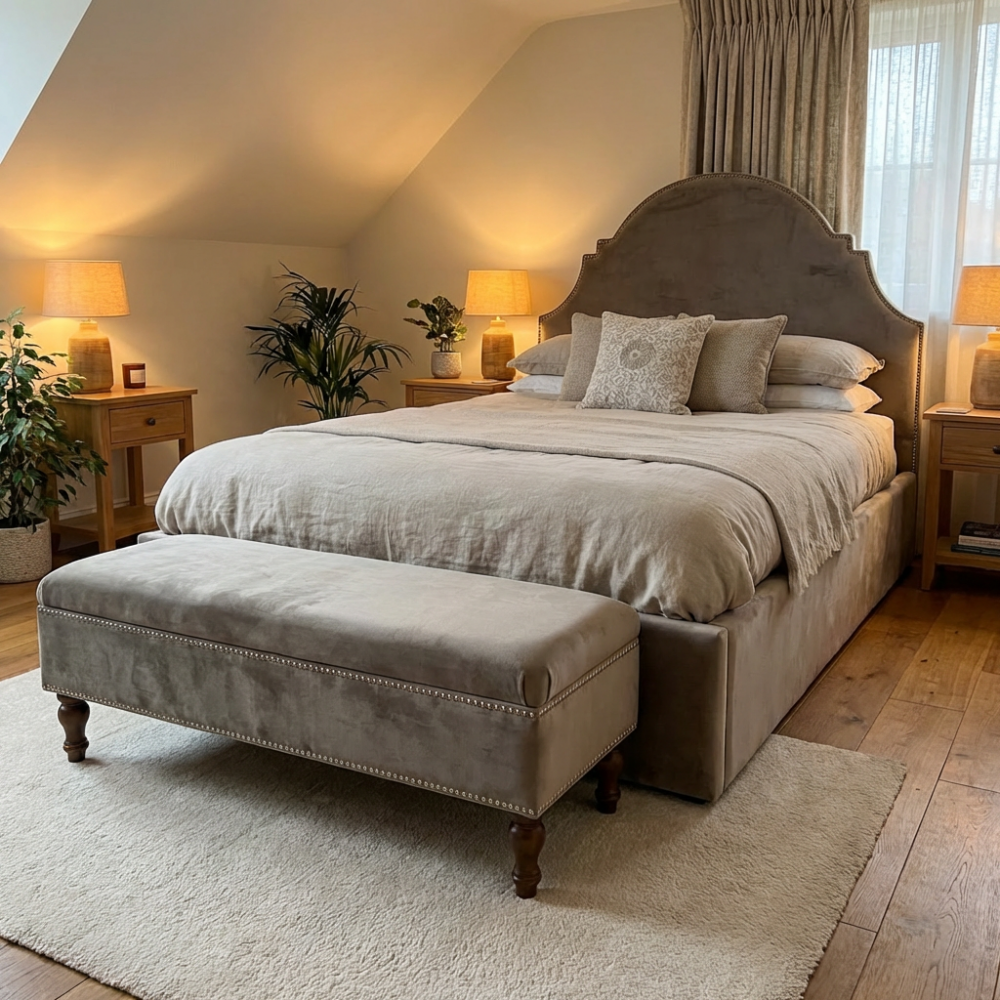 Pod nienaganną estetyką łóżka Sisi kryje się praktyczne rozwiązanie, które docenisz w codziennym użytkowaniu. Mebel został wyposażony w przestronny pojemnik na pościel, ukryty pod solidnym stelażem. Dzięki temu zyskujesz dodatkową, niemal niewidoczną przestrzeń do przechowywania zapasowych kołder, poduszek czy sezonowej garderoby, co ułatwia utrzymanie nienagannego porządku w sypialni. Wybierając ten model, nie musisz decydować między wielkim stylem a funkcjonalnością – otrzymujesz oba te elementy w jednym, dopracowanym produkcie.