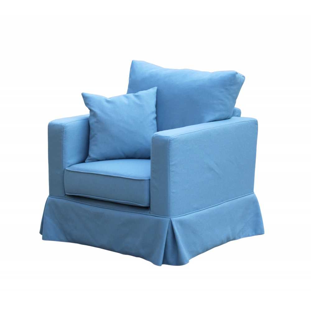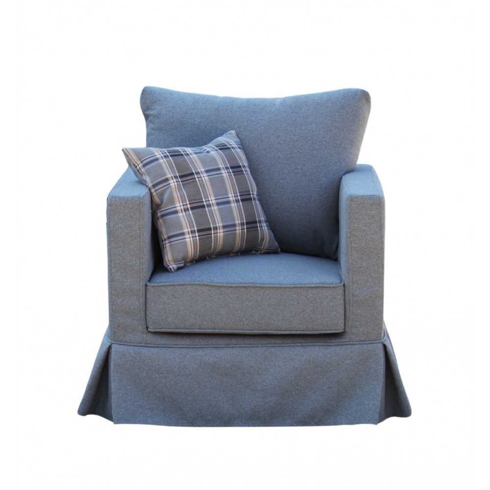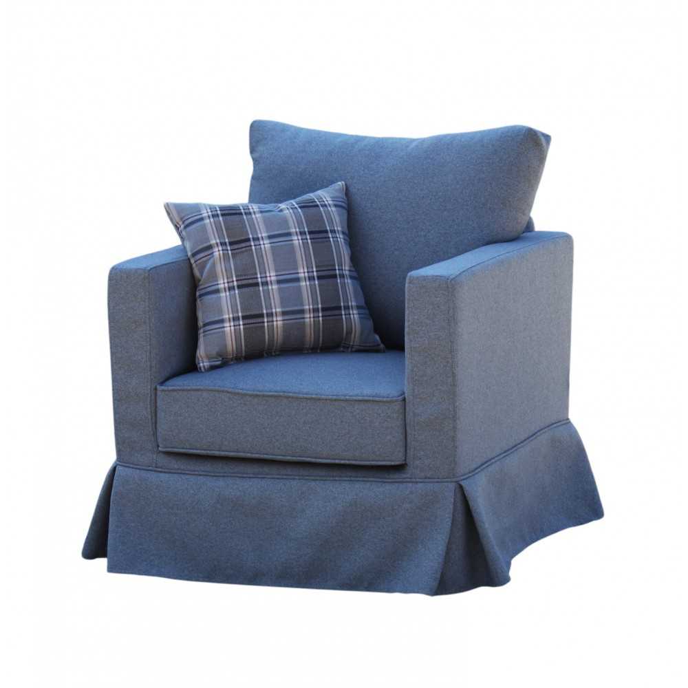 Niebieski fotel Vesper z fartuchem od meblefox.com – Styl i Komfort do Twojego Wnętrza