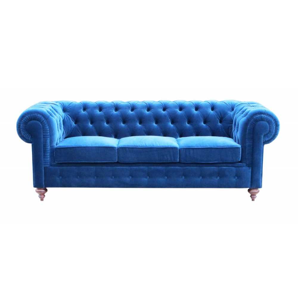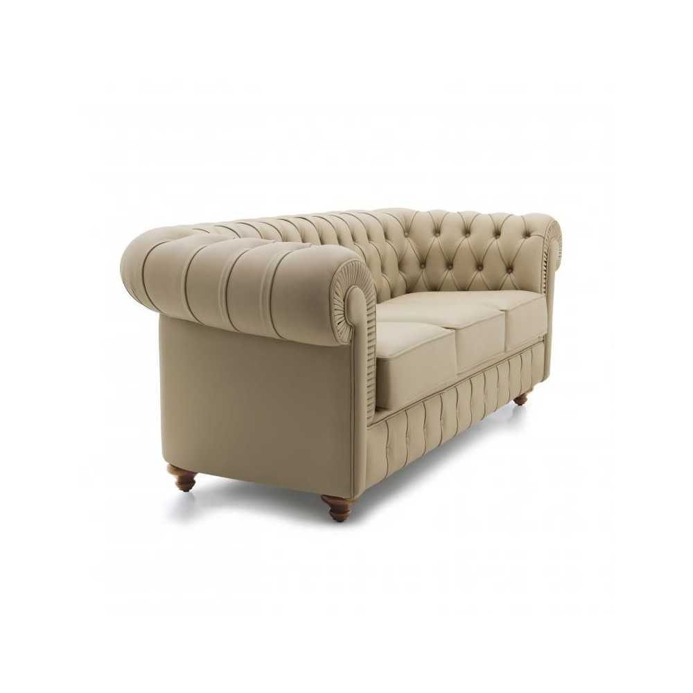 Tevere - stylowa kanapa angielska Chesterfield jest pikowana, a także ozdobiona marszczeniami na podłokietnikach. Te elementy wraz z oparciem są na tej samej wysokości, zatem z trzech stron zabudowują siedzisko, tworząc prywatny, przytulny nastrój. Wysokoelastyczna pianka, która wypełnia poduchy, perfekcyjnie dopasowuje się do ciała osoby, która na nich przebywa, a zarazem jest wysoce odporna na odkształcenia i wgniecenia. Mebel zachowuje swoją pierwotną stylową formę na wiele lat.