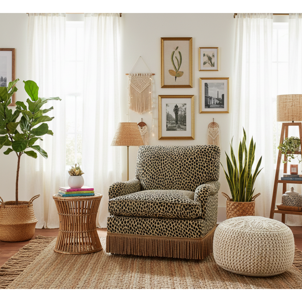 Fotel Paxton w tkaninie panterka to wyjątkowy model stworzony dla osób, które kochają odważny design, najwyższy komfort i wnętrza pełne charakteru. To połączenie klasycznej, eleganckiej sylwetki z modowym, wyrazistym wzorem inspirowanym dziką naturą. Efekt? Mebel, który natychmiast przyciąga wzrok i nadaje przestrzeni luksusowej energii.