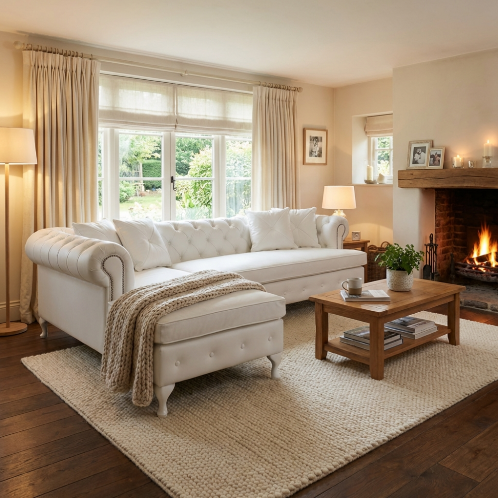 Charleston - duży pikowany narożnik z drewnianym postumentem