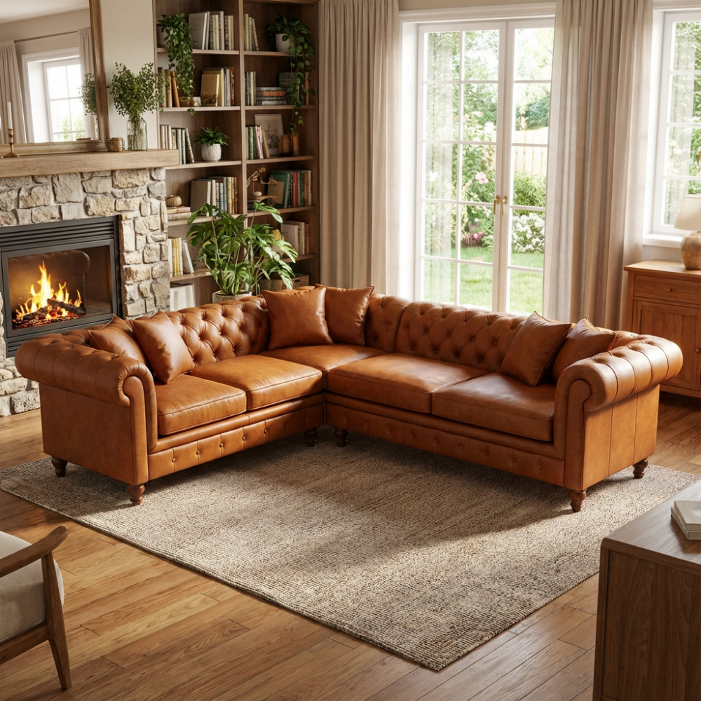 Sofa narożna w brązowej skórze naturalnej Sara 180x250 cm