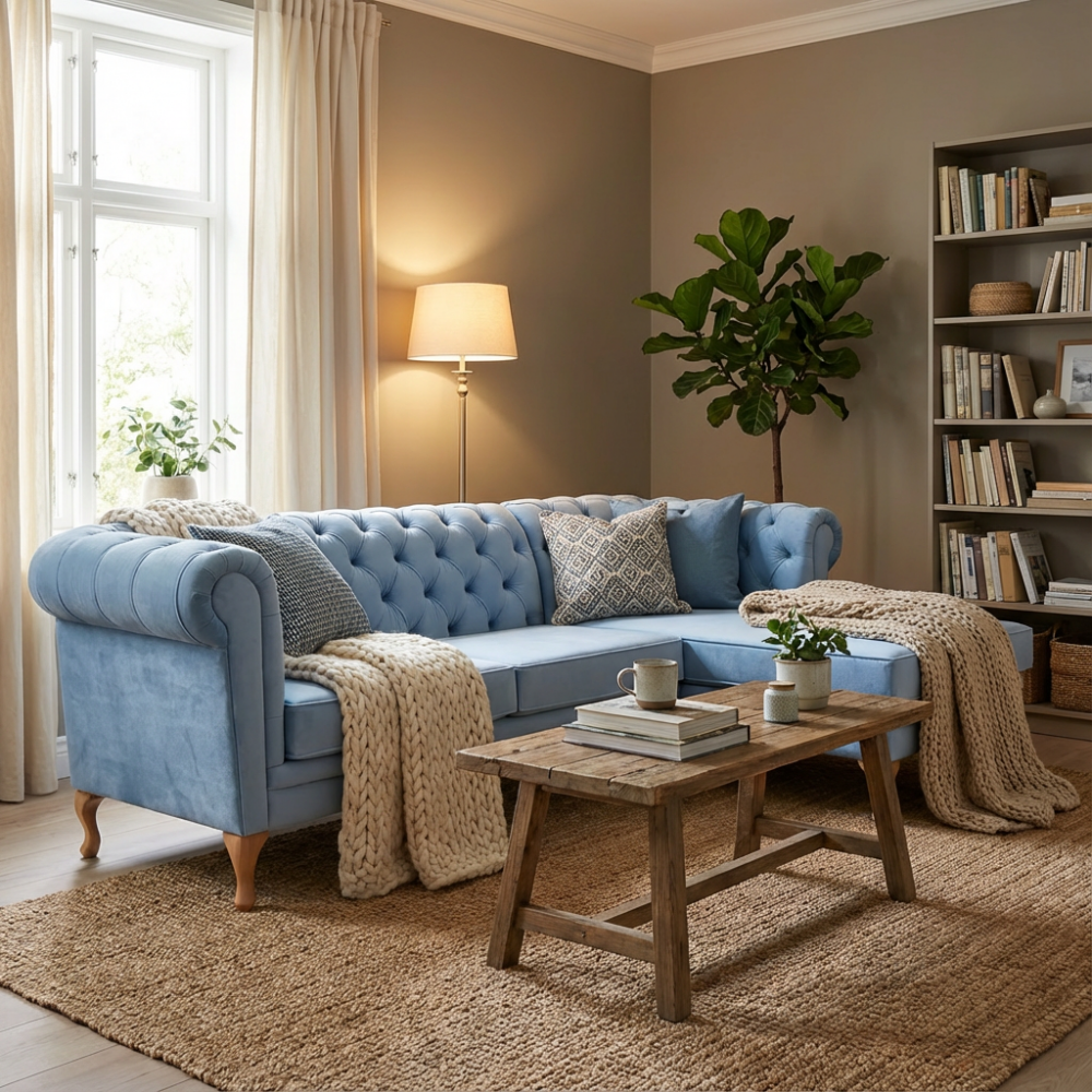 Charleston - duży pikowany narożnik z drewnianym postumentem