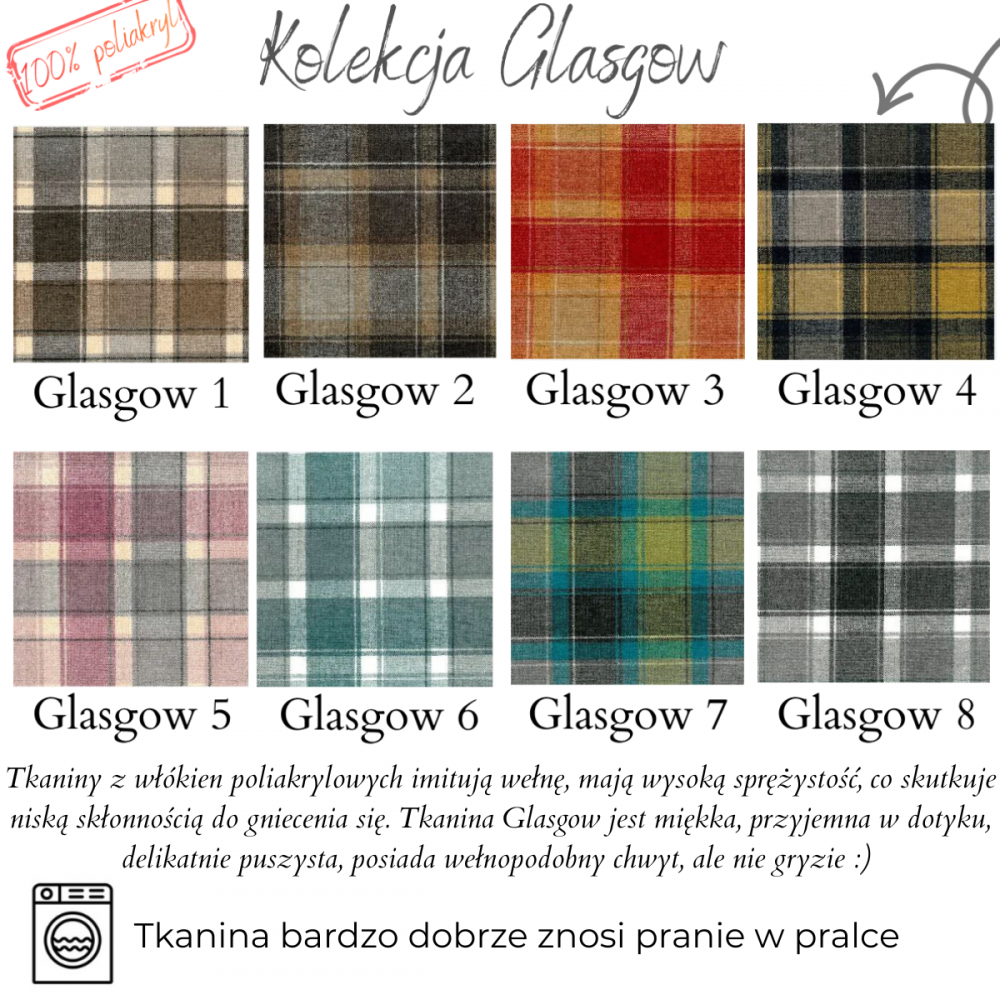 - tkanina za zdjecia to na poduszkach: krata Glasgow 07, na podłokientikach skóra naturlana woskowana Rustical Brown 30 - kombinacja za dopłatą