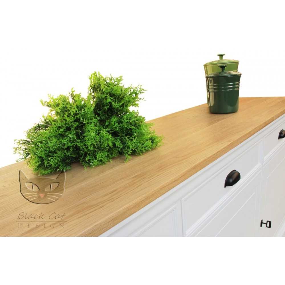 - w tym przypadku blat dębowy, składany metodą na mikrowczepy, frezowany