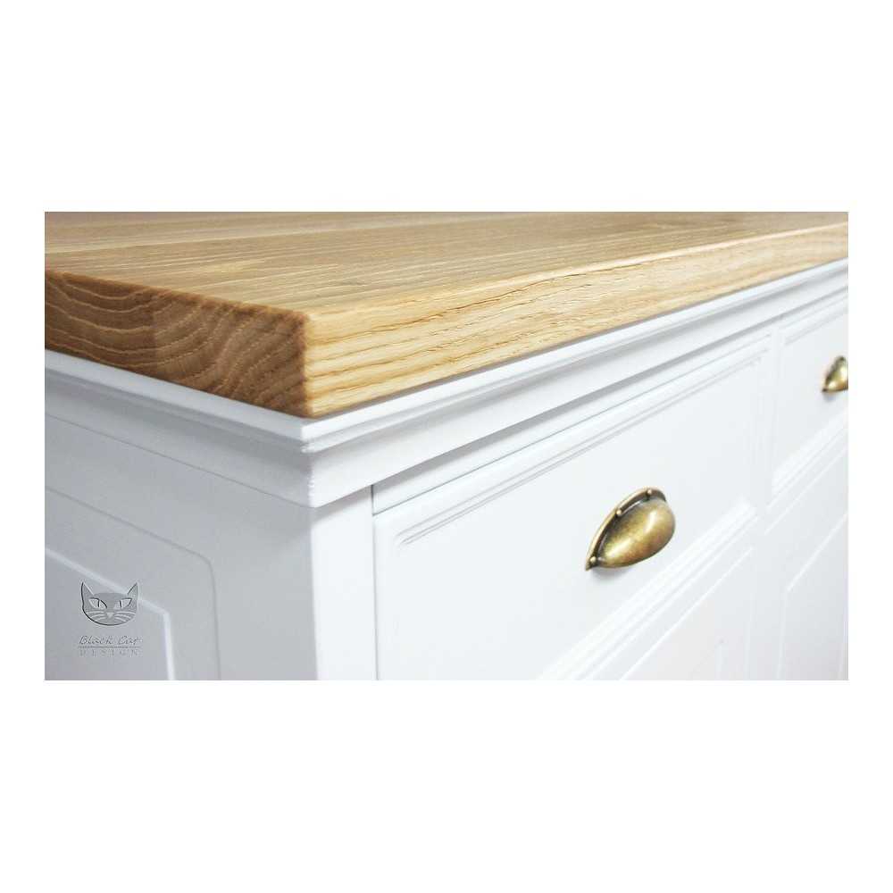 - w tym przypadku blat dębowy, składany metodą na mikrowczepy, frezowany