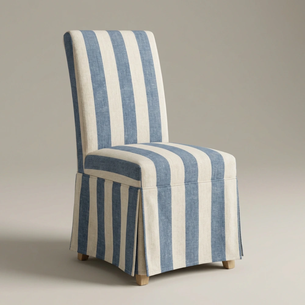 Krzesło Adriatic – Lniane krzesło w niebieskie pasy, styl Hamptons