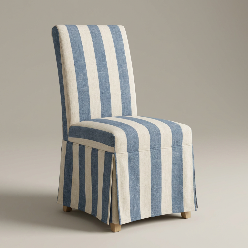 Krzesło Adriatic doskonale komponuje się z naturalnymi materiałami – świetnie zaprezentuje się przy dębowym stole, w otoczeniu białych kredensów czy klasycznej sztukaterii. Niebieski motyw florystyczny na jasnym tle optycznie ożywia pomieszczenie, wprowadzając do niego wizualną lekkość i kojącą energię natury. Jest to mebel niezwykle uniwersalny, który sprawdzi się nie tylko w reprezentacyjnej jadalni, ale również jako stylowy akcent w sypialni przy toaletce czy w nastrojowym kąciku wypoczynkowym.