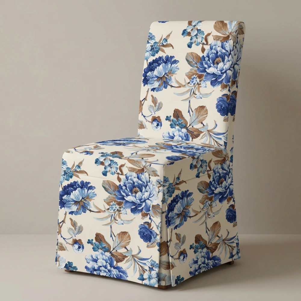 Krzesło Adriatic – Tapicerowane krzesło w niebieskie piwonie, styl Prowansalski Cottage