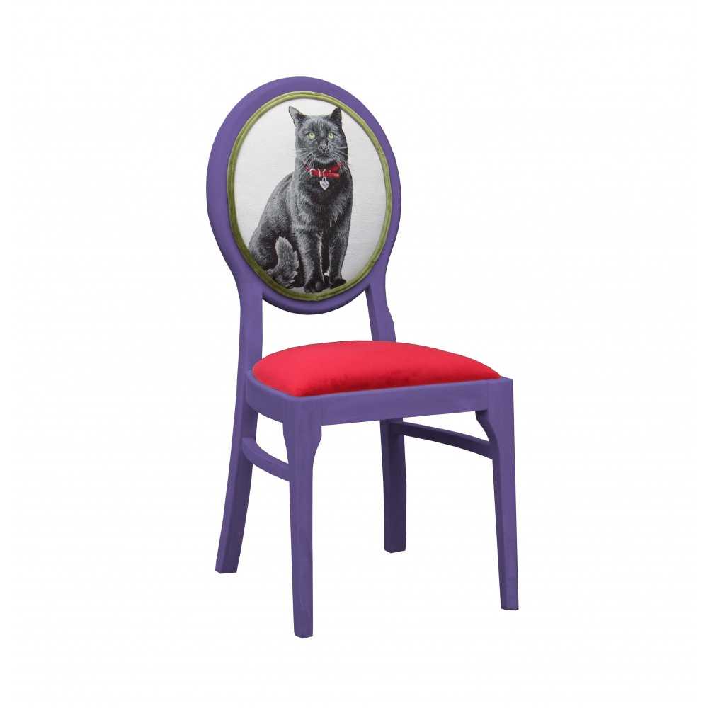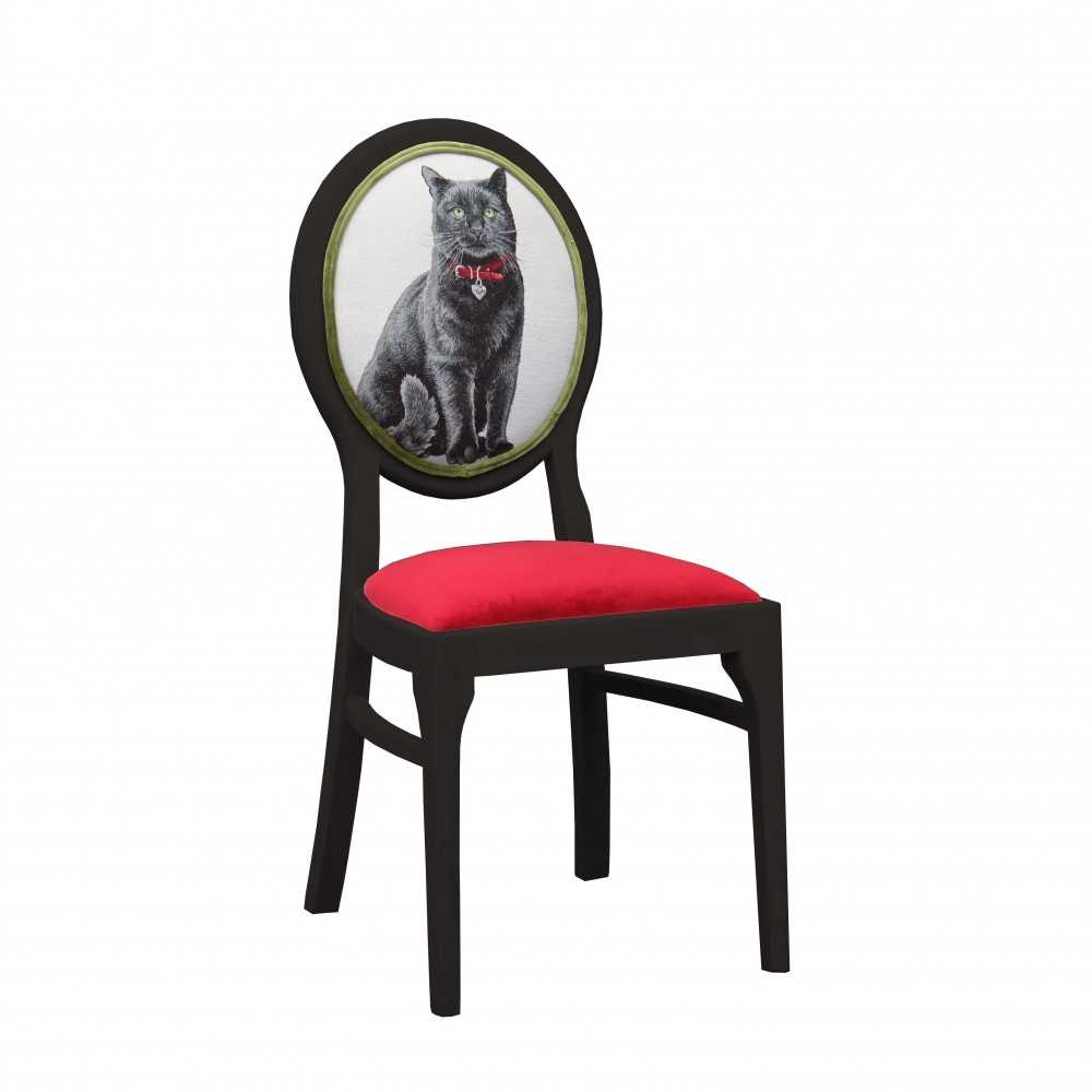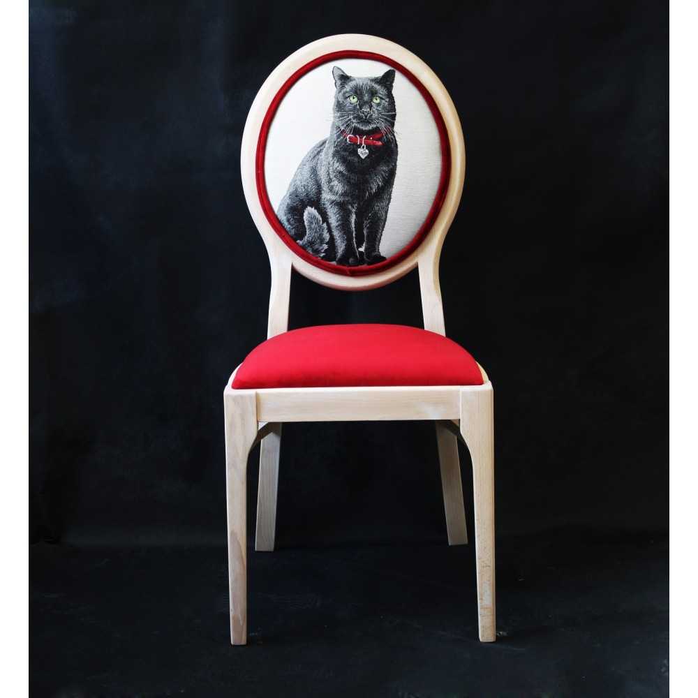 - krzesło w stylu vintage z oparciem z kotem