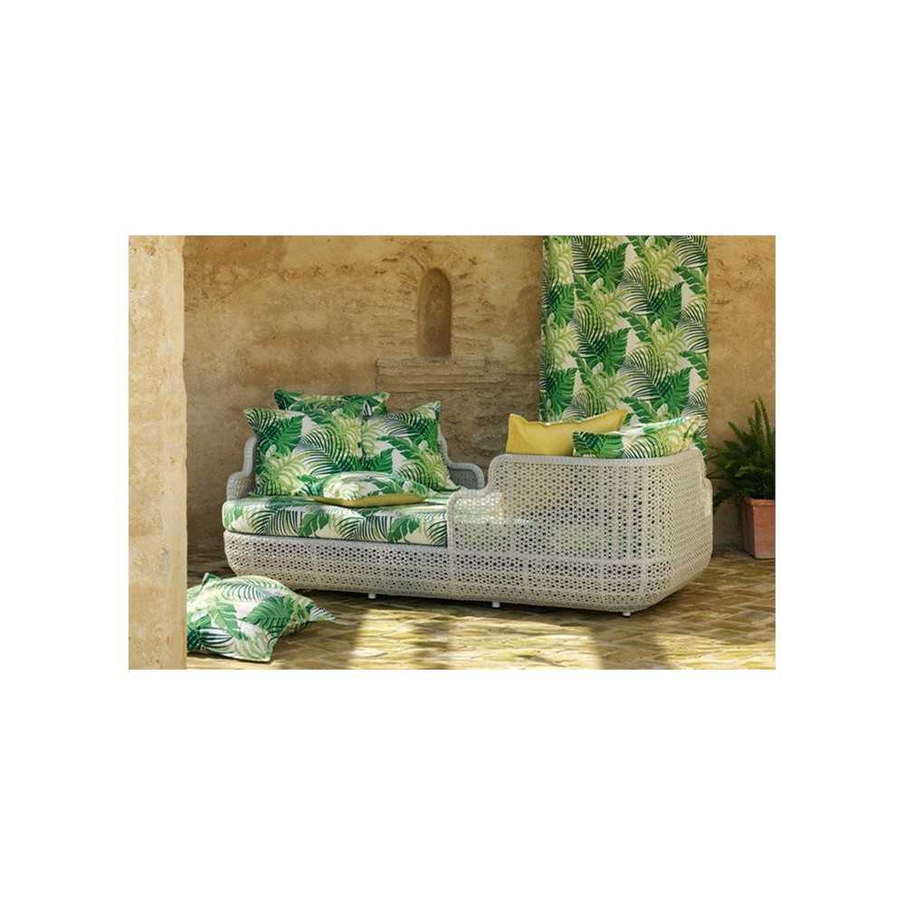 Prezentowana tkanina to połączenie Bawełny, Lnu oraz Nylonu, przepiękny rysunek tropikalnych liści daje niezwykły efekt dekoracyjny. Poczuj się, jak w tropikalnej dżungli, połóż się na wygodnym fotelu w tkaninie Manila, przystrój okna zasłonami z Manila. Przytul się do poduszeczki dekoracyjnej, która jest niezwykle miła w dotyku, a do tego przepiękna. Naprawdę nie możesz przejść obojętnie wokół tej kolekcji tkanin.