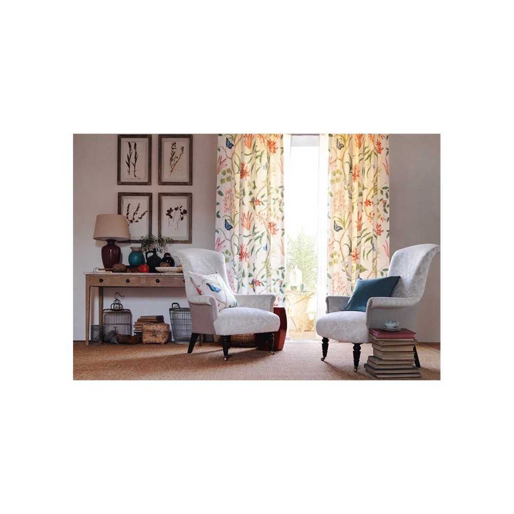 Przepiękne połączenie roślin i zwierząt, swoistego rodzaju drzewo życia spięte pięknymi kolorami. Drobne liście i kwiaty, motyl i koliber cała historia zawarta na kawałku materiału. Cztery wersje kolorystyczne pozwalają na dobranie odcieniu dokładnie do wymagań dekoratora. Połączenie wiskozy z lnem idealnie nadaje się na tapicerkę meblową, zasłony czy poduszeczki dekoracyjne.