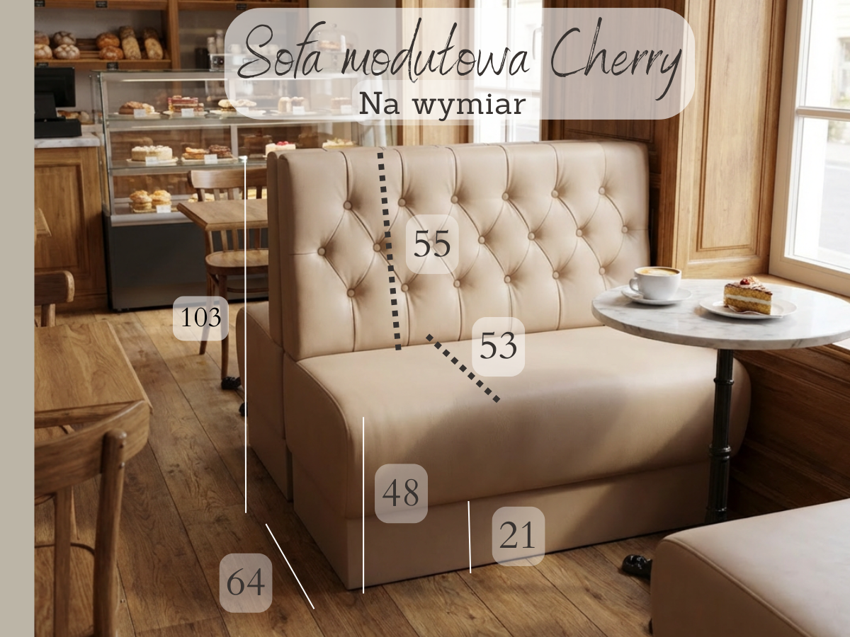 Loża tapicerowana Cherry o szerokości 180 cm to mebel zaprojektowany, by stać się centralnym punktem Twojej aranżacji. Szerokość 180 cm zapewnia królewską przestrzeń dla dwóch osób lub niezwykle komfortowe miejsce dla trzech gości, co czyni ją najchętniej wybieranym modelem do ekskluzywnych restauracji, hoteli oraz stref biznesowych. Głębokie, precyzyjne pikowanie oparcia nawiązuje do najlepszych tradycji stylu Chesterfield, wprowadzając do wnętrza atmosferę luksusu.