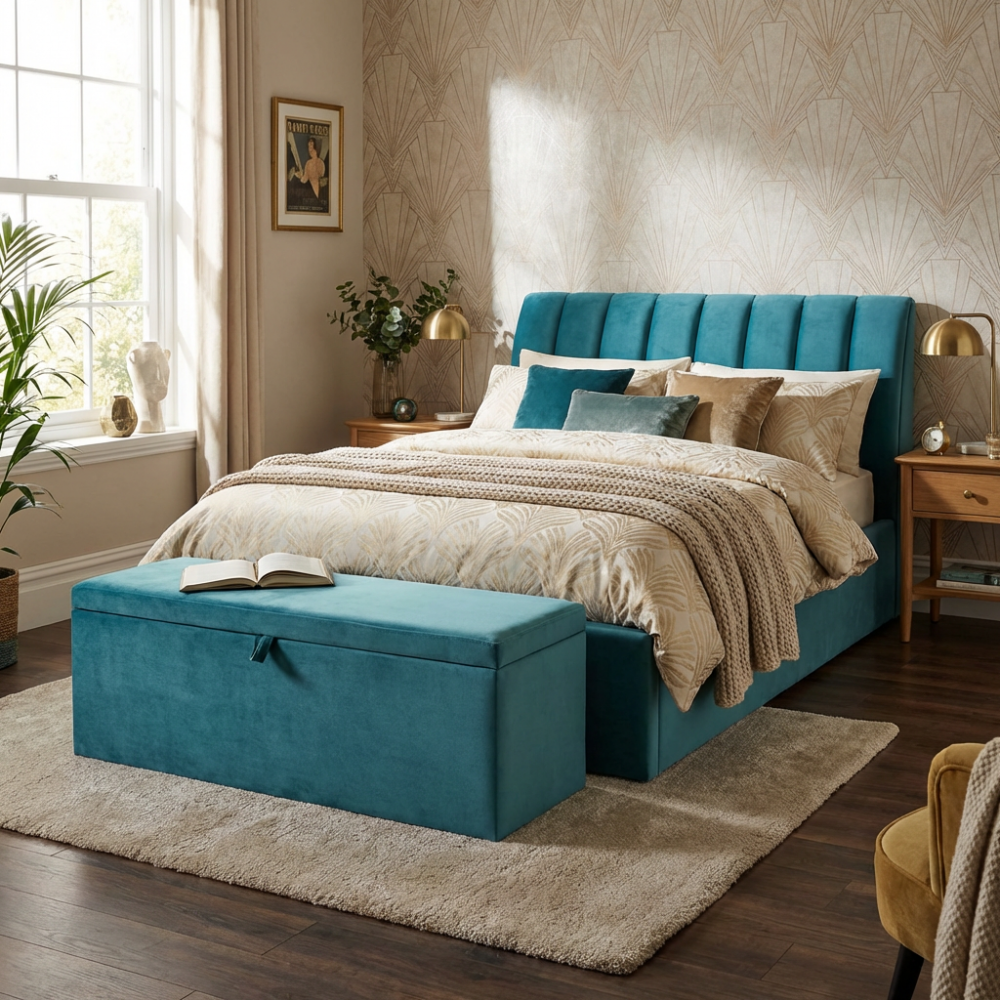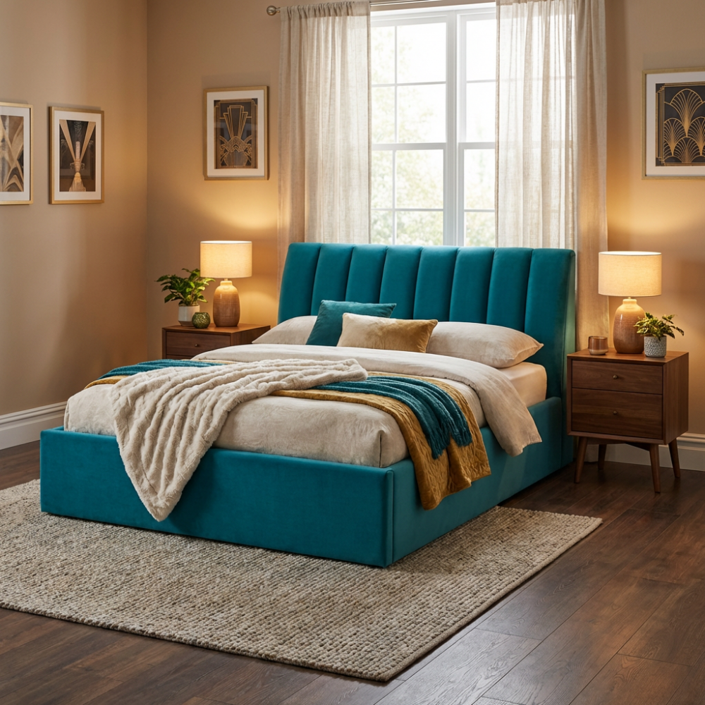 Urządzanie sypialni to szukanie balansu między funkcjonalnością a stylem, który pozwoli nam w pełni się zrelaksować. Zestaw łóżka Spark z dopasowaną skrzynią to gotowe rozwiązanie dla osób, które cenią spójne i dopracowane wnętrza. Turkusowa, welurowa tapicerka wprowadza do pomieszczenia głębię i nowoczesny sznyt, a pionowe przeszycia na wysokim zagłówku nadają całości wyrazistego, luksusowego charakteru. To łóżko nie tylko zdobi przestrzeń, ale staje się jej sercem, tworząc przytulną przystań idealną do odpoczynku.