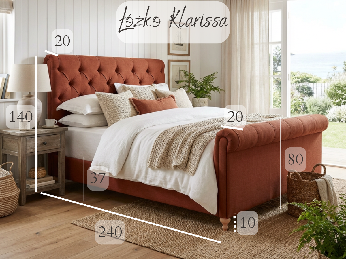 Stworzenie wnętrza, które każdego dnia nastraja pozytywnie i pozwala na głęboki relaks, wymaga mebli o wyjątkowym charakterze. Łóżko Klarissa to propozycja, która przenosi estetykę luksusowych nadmorskich kurortów wprost do Twojego domu. Jego najbardziej rozpoznawalnym elementem jest wysoki, głęboko pikowany zagłówek, który w połączeniu z finezyjnie wywiniętym frontem tworzy harmonijną i niezwykle elegancką bryłę. To mebel, który nie tylko definiuje styl sypialni, ale staje się obietnicą najwyższego komfortu.