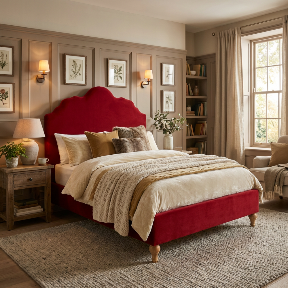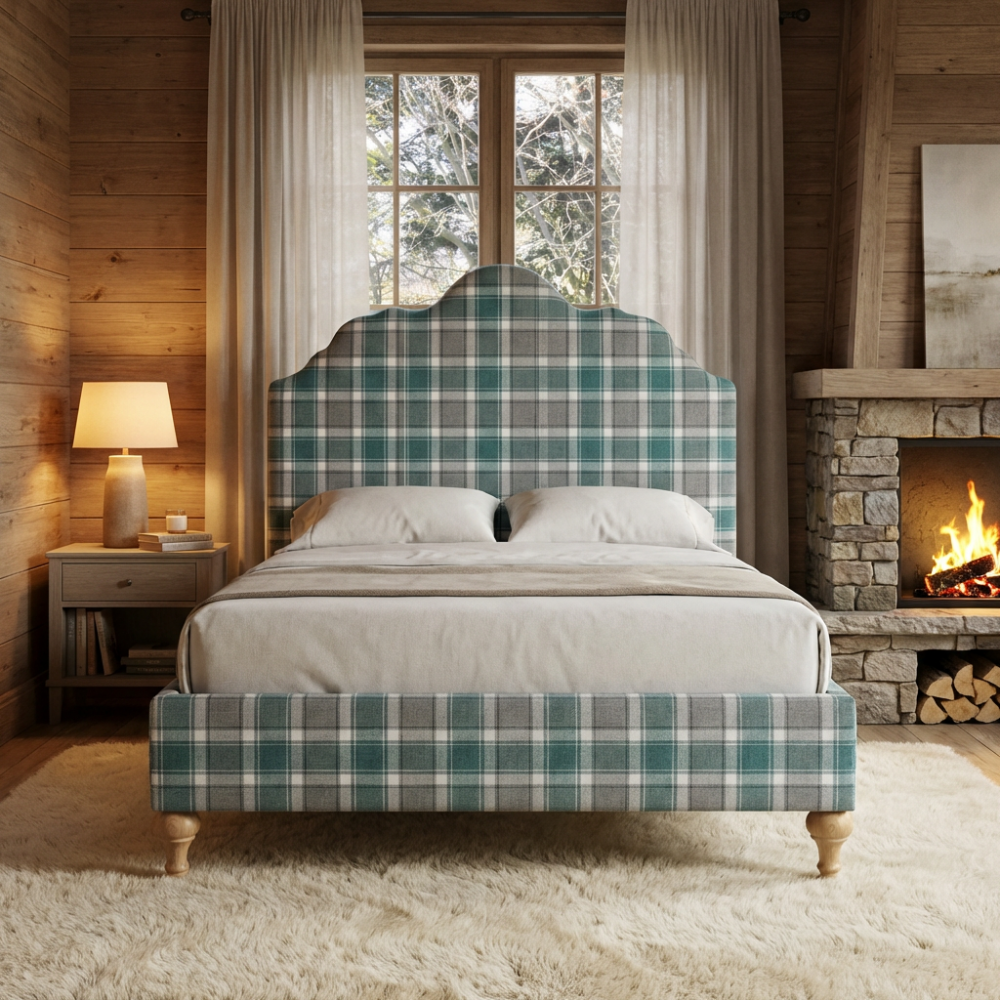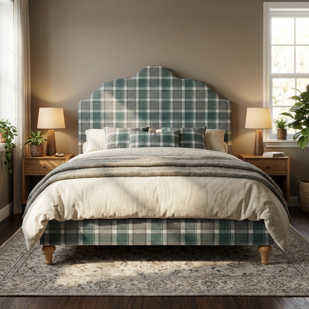 Sypialnia to miejsce, w którym tradycja spotyka się z osobistym komfortem, a łóżko Romantico w tej unikalnej odsłonie to prawdziwy manifest przytulności. Projekt ten łączy odważną, niemal królewską formę wysokiego, falistego wezgłowia z domowym, ciepłym charakterem tkaniny w klasyczną kratę. To mebel dla osób, które pragną nadać swojemu wnętrzu unikalny rys, łącząc elegancję dawnych rezydencji z swobodą stylu rustykalnego czy modern farmhouse.