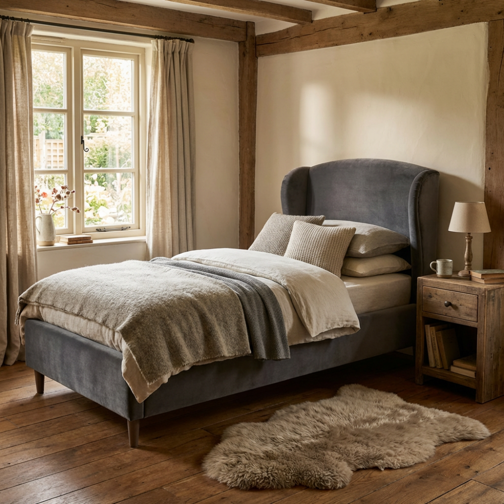 Sypialnia to miejsce, w którym estetyka powinna iść w parze z absolutnym poczuciem komfortu. Łóżko Frou Frou w szarym, welurowym wydaniu to propozycja dla osób, które cenią styl modern classic – wyważone połączenie elegancji i domowej przytulności. Jego najbardziej charakterystycznym elementem jest wysoki, lekko zaoblony zagłówek z delikatnie zarysowanymi „uszami”. Taka forma tworzy intymną przestrzeń, która niemal zaprasza do tego, by zaszyć się w niej z ulubioną książką i odciąć od zgiełku dnia.