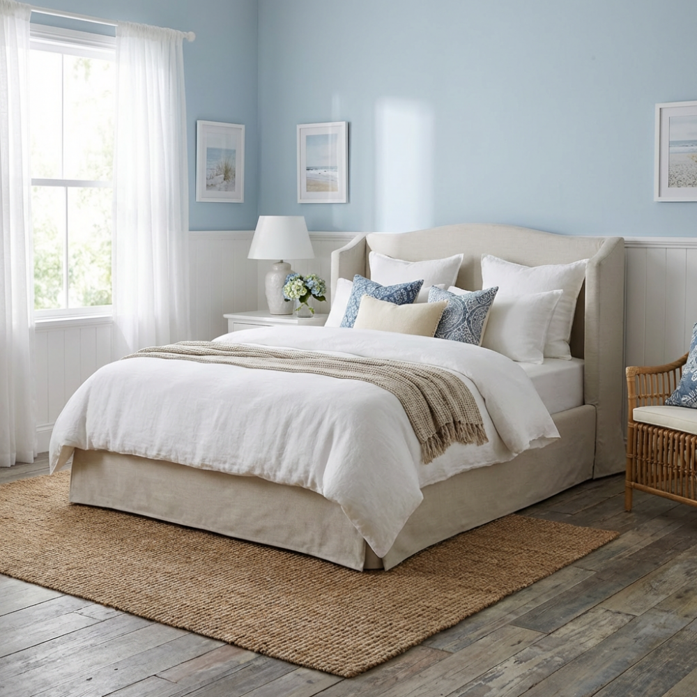 Człowiek inaczej śpi, jak jest otoczony naturalnymi materiałami. Obicie lniane jest bardzo wytrzymałe. Zagłówek miękki, wygodny do oparcia.