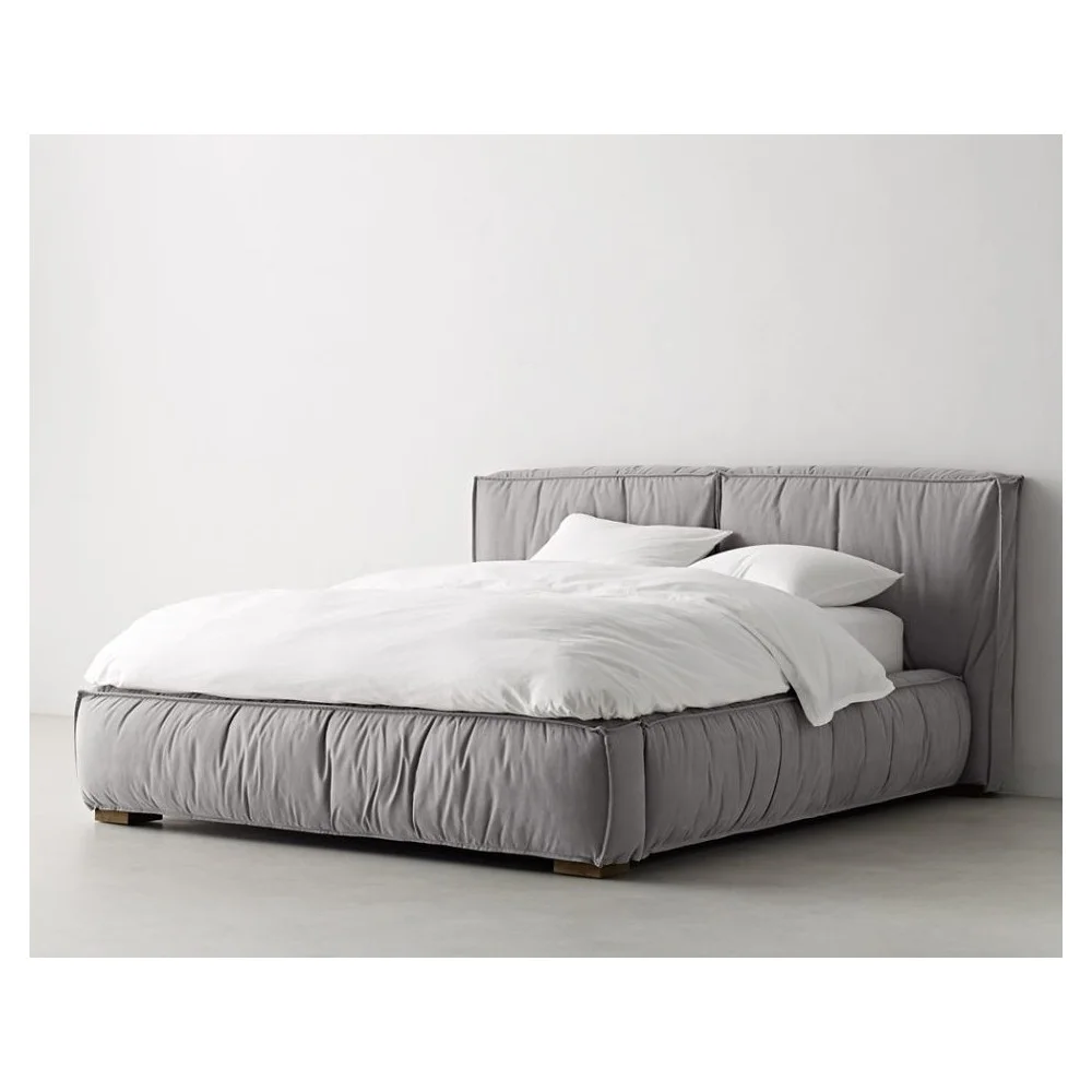 - nowoczesne łóżko sprawiające wrażenie że składa się z miękkich poduch