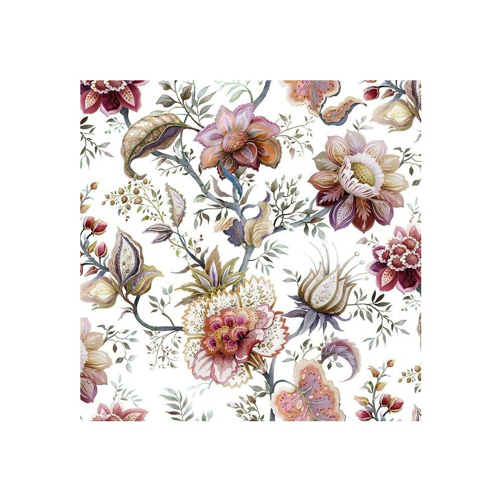 Piękna i niezwykle efektowna tkanina o wyraźnym wzorze. Nadaje się na wszelkiego rodzaju meble, oraz na zasłony. Bardzo dobrze wygląda w połączeniu z jednolitymi kolorystycznie tkaninami. Motyw kwiatowy zyskuje niespotykaną głębię, dzięki umieszczeniu go na białym, jasnym tle.