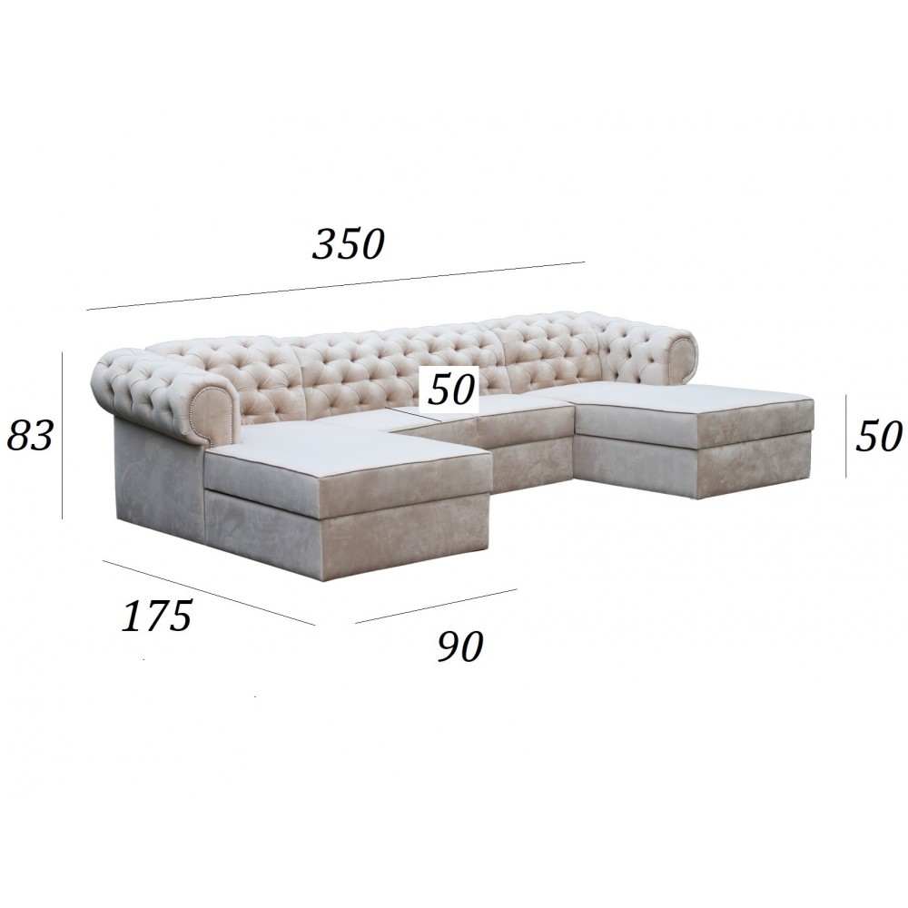 Narożnik U w stylu Chesterfield Ferro - gdzie elegancja spotyka komfort, tworząc wyjątkową oazę luksusu i stylu w Twoim wnętrzu.