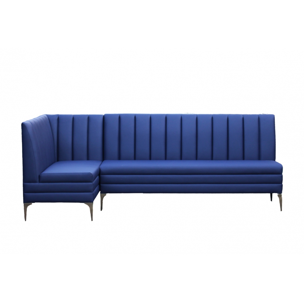 Narożnik wyróżnia się nowoczesnym wyglądem, który przyciąga wzrok. Elegancka tapicerka w głębokim, niebieskim odcieniu nadaje mu wyjątkowego charakteru, wprowadzając do wnętrza nutę świeżości i stylu. Delikatne, pionowe przeszycia na oparciach podkreślają geometryczny design, nadając meblowi lekkiej i harmonijnej formy. Siedzisko jest starannie wyprofilowane, zapewniając komfort nawet podczas dłuższego użytkowania.