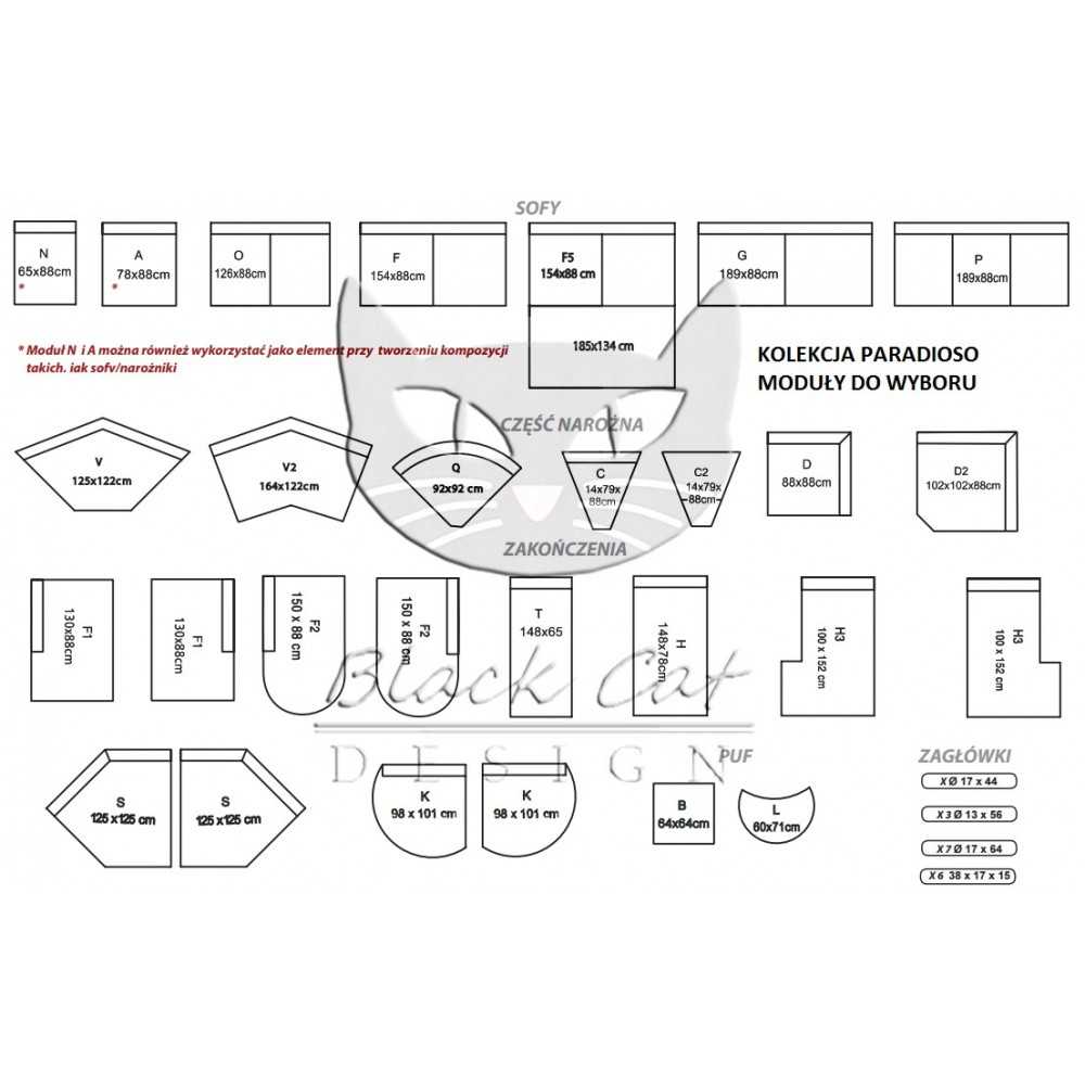 - moduły w standardzie posiadają wypełnienie z pianki wysokoelastycznej. Opcjonalnie można zamówić wypełnienie DUN_TOP (pianka wysokoelastyczna+mix pierza i frytki piankowej).