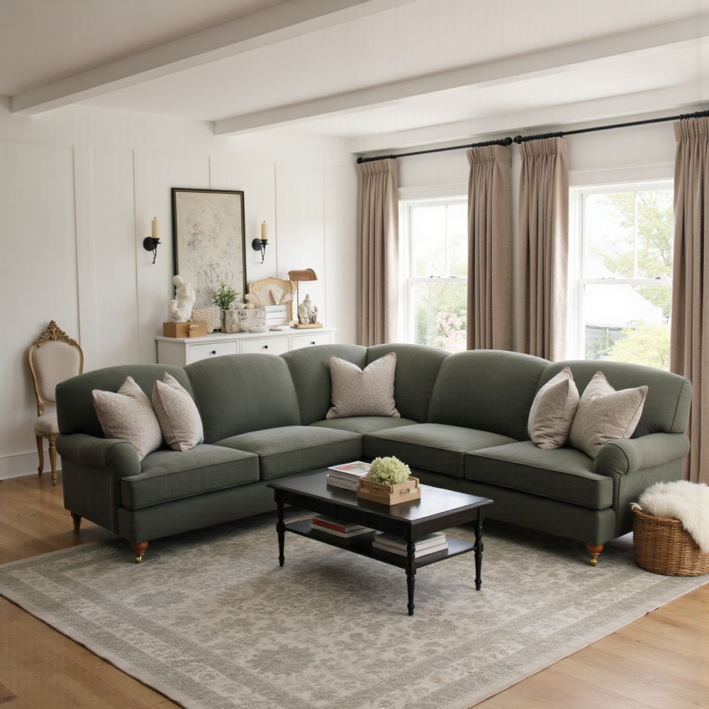 Stylowy, kompaktowy i niezwykle wygodny – narożnik Paxton od Meble Fox to idealne rozwiązanie dla osób ceniących przytulny design i funkcjonalność. Jego klasyczna forma w stylu modern farm house, subtelnie zaokrąglone podłokietniki i drewniane nóżki dodają wnętrzu elegancji i ciepła.
