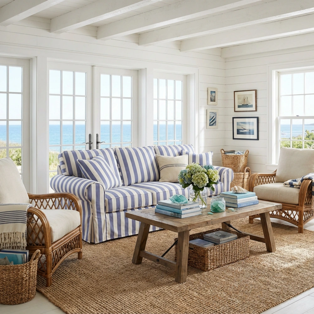 Sofa w stylu marine Marie 236 cm rozkładana i ze ściąganym pokrowcem