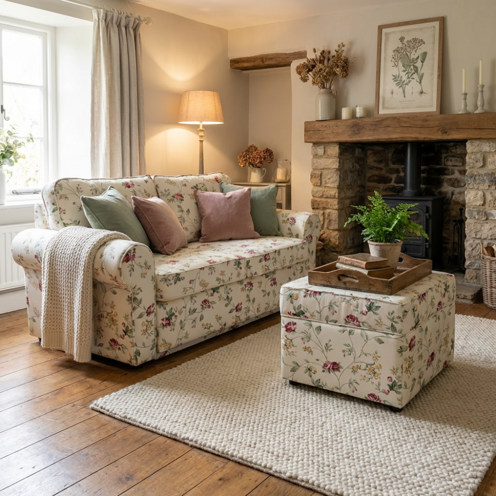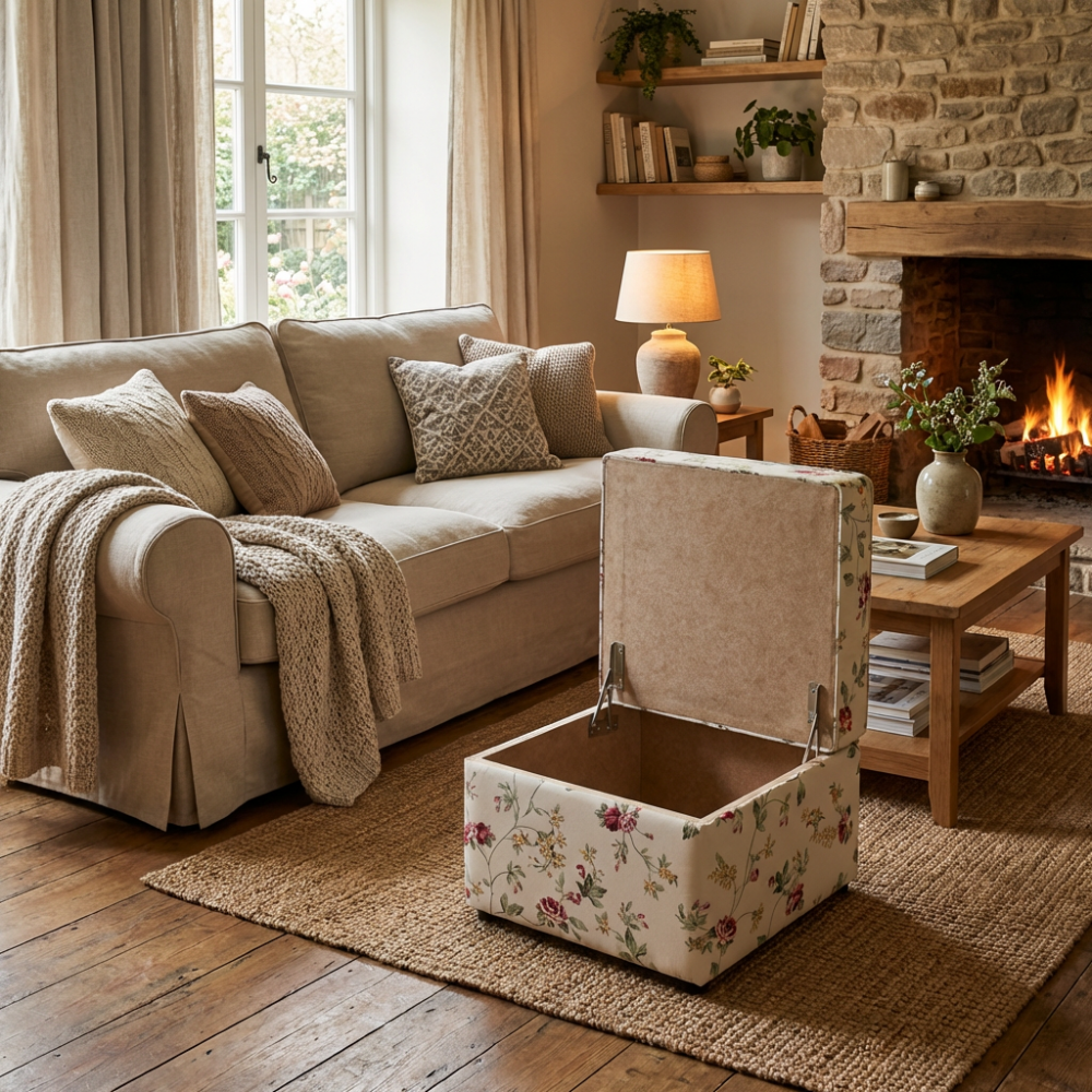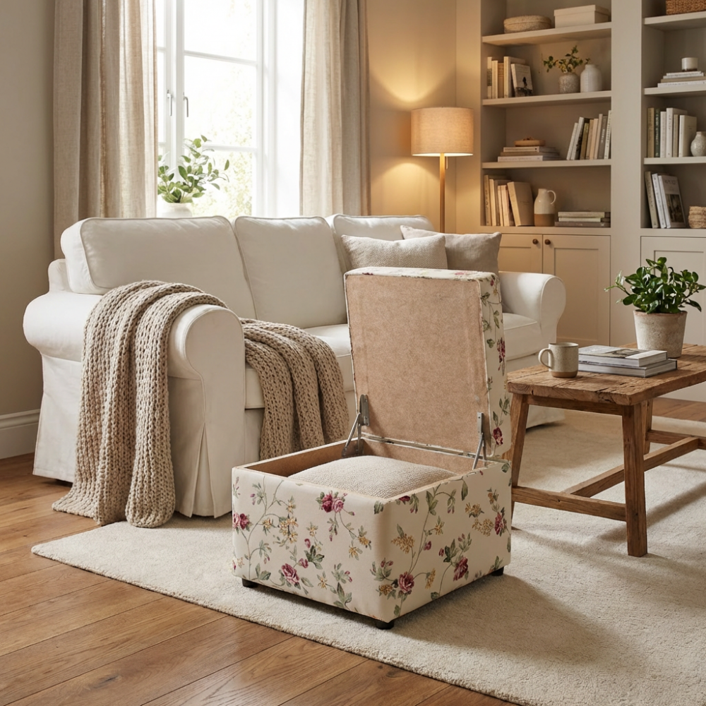 Pufa Rosaly 60x60 cm z pojemnikiem – Kwiecisty podnóżek w stylu Cottage