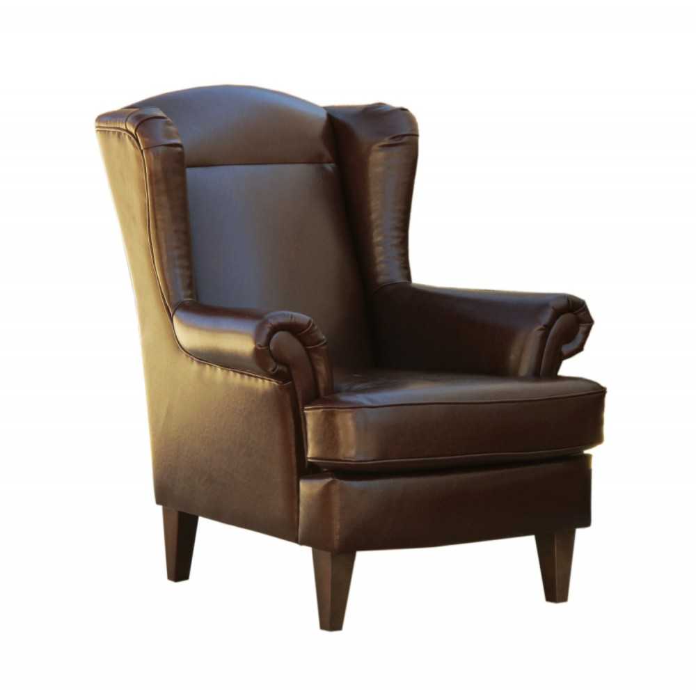 Uszak w skórze naturalnej, fotel babciny