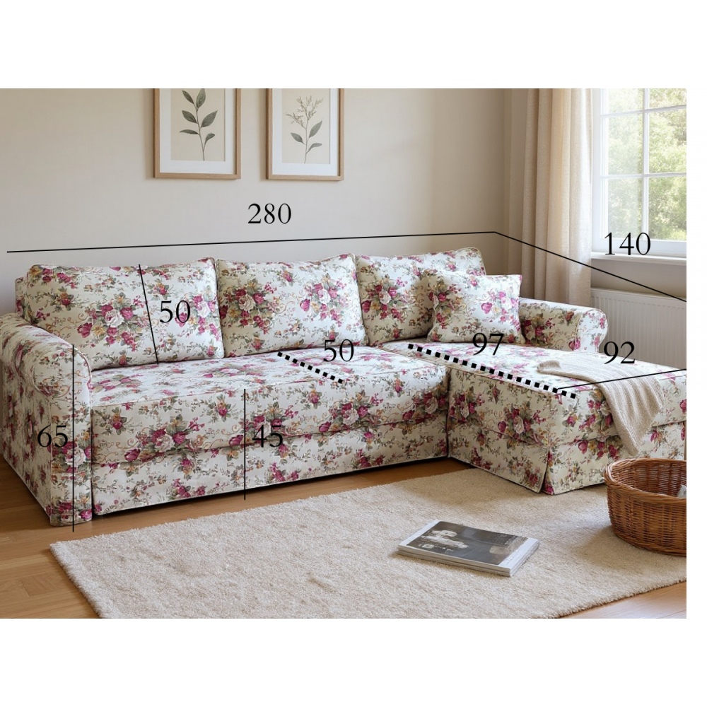 Flower 280x140 cm - narożnik w kwiaty - szybka realizacja!