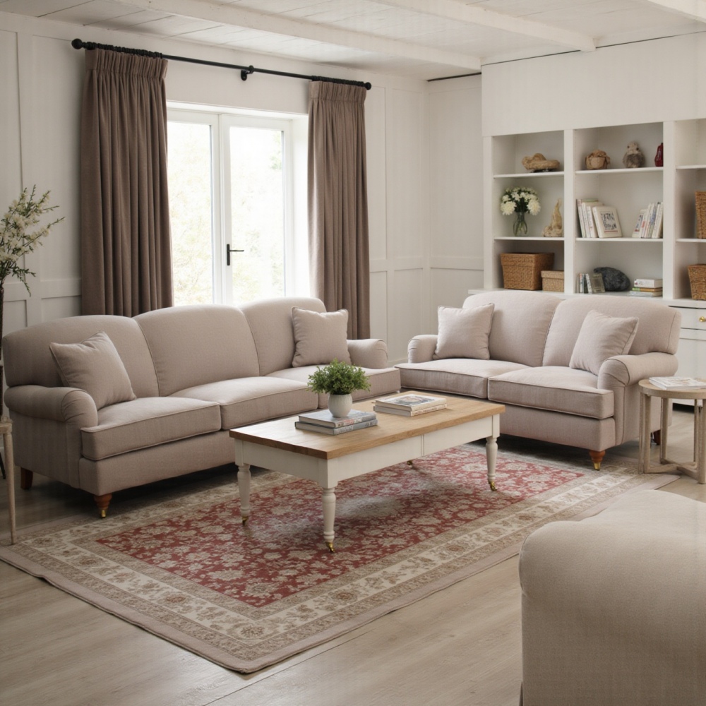 Wykończona w delikatnym, neutralnym odcieniu, ta stylowa angielska sofa doskonale wpisuje się w eleganckie, jasne aranżacje, ale równie pięknie komponuje się z rustykalnymi i klasycznymi dodatkami. Miękka tapicerka zapewnia wyjątkowy komfort, a solidna konstrukcja gwarantuje trwałość na lata.
