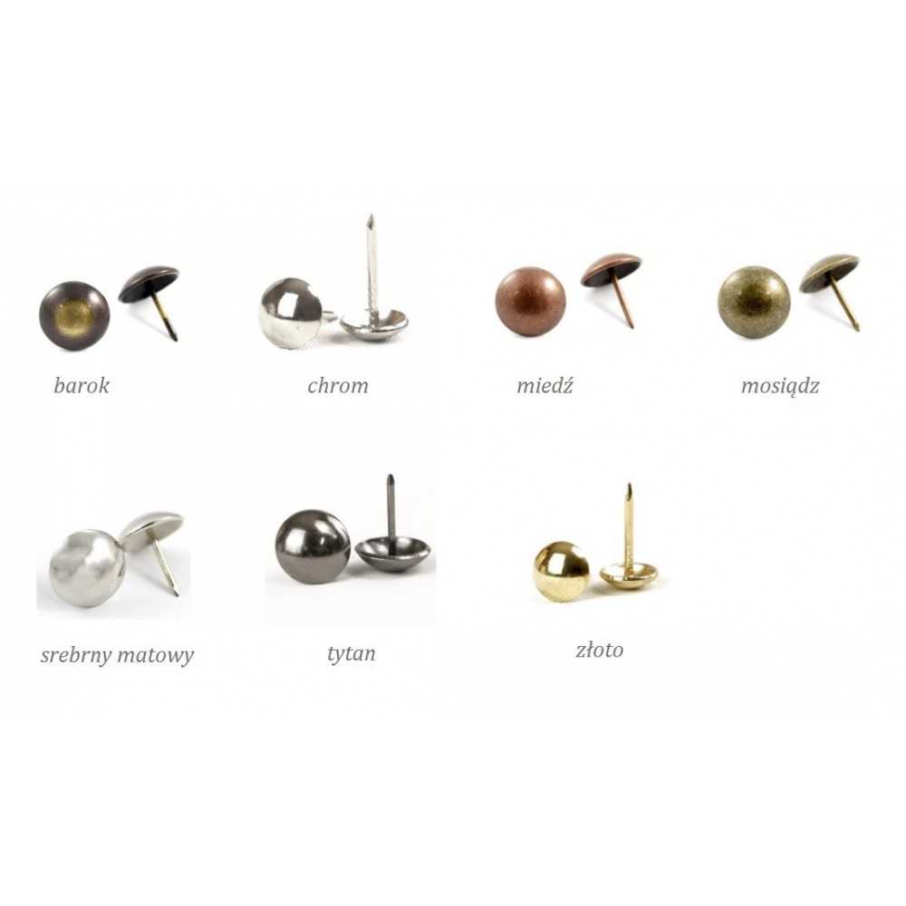 - sofa wykonany w tkaninie Infinity 22, z dekoracyjnymi gwoździami w kolorze srebrnym błyszczącym, nogi w kolorze wenge, tkanina z dopłatą