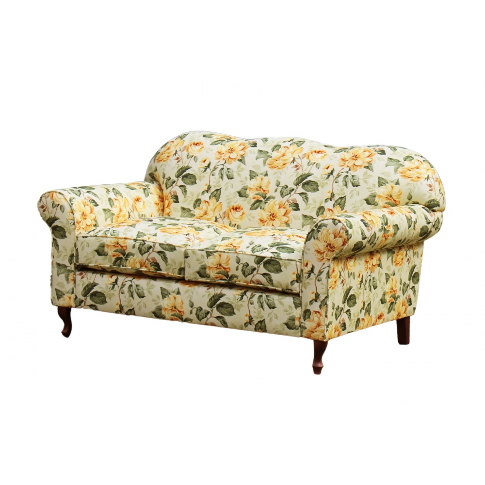 - sofa ze zdjęcia wykonana w tkaninie Monegal col 1 w duże żółte kwiaty za dopłatą