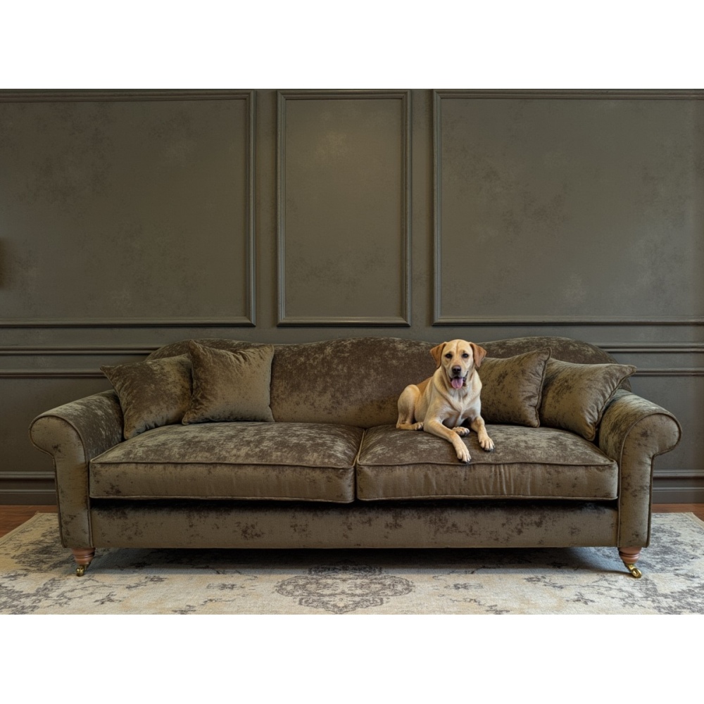 Tiara 230 – elegancka welurowa sofa w stylu angielskim z głębokim siedziskiem