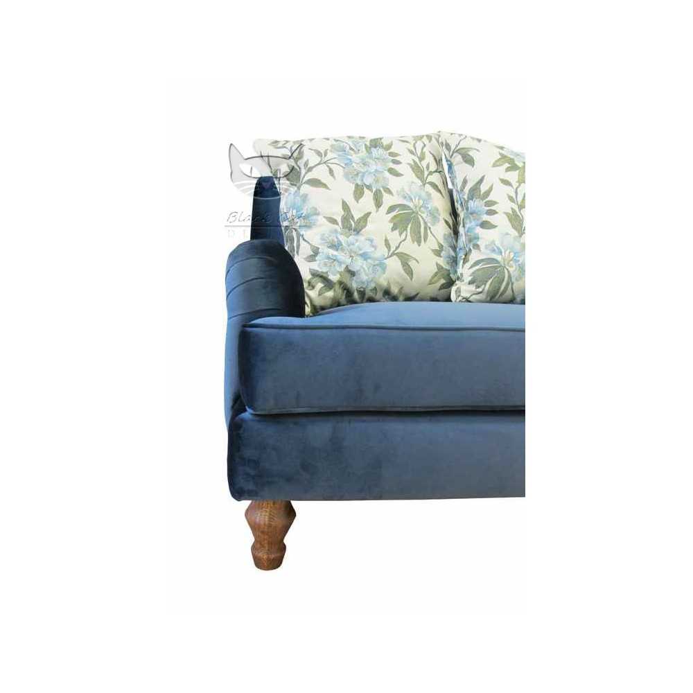 Sofa Marlene 200 w stylu francuskim to wygodne miejsce wypoczynku przeznaczona dla trzech-czterech osób. Ma szerokość całkowitą 220 cm oraz stoi na stylowych drewnianych nóżkach, dzięki czemu całość stwarza wrażenie lekkości, a dodatkowo umożliwia łatwe odkurzanie bez konieczności odsuwania kanapy. Stylowa sofa z kwiatowymi poduchami Marlene 220 znakomicie podkreśli francuski lub prowansalski styl salonu. Pokryto ją przyjemnym w dotyku obiciem w interesującym kolorze. Wygodne siedziska na sprężynach oraz prostokątne oparcia wypełnia miękka pianka.