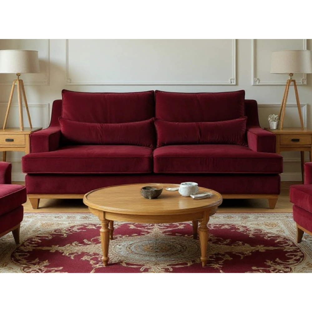 Stylistyką przypomina mebel z przeszłości. Duży plus za łatwe w użytkowaniu rozkładanie sofy. Podłużne poduszki to bardzo praktyczne rozwiązanie dla odciążenia kręgosłupa lędźwiowego podczas odpoczynku.