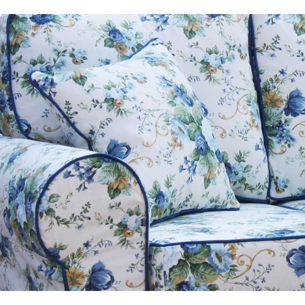 Rosaly 206 - Sofa w Stylu Prowansalskim z Niebieskimi Kwiatami