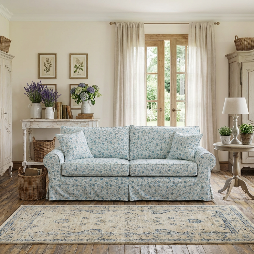 Christine 208 kanapa w stylu angielskim w małe niebieskie kwiatuszki