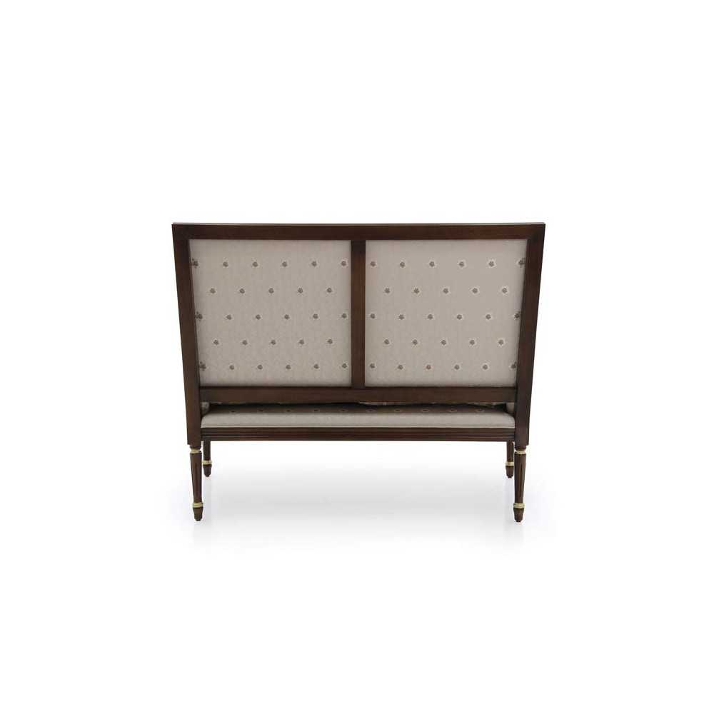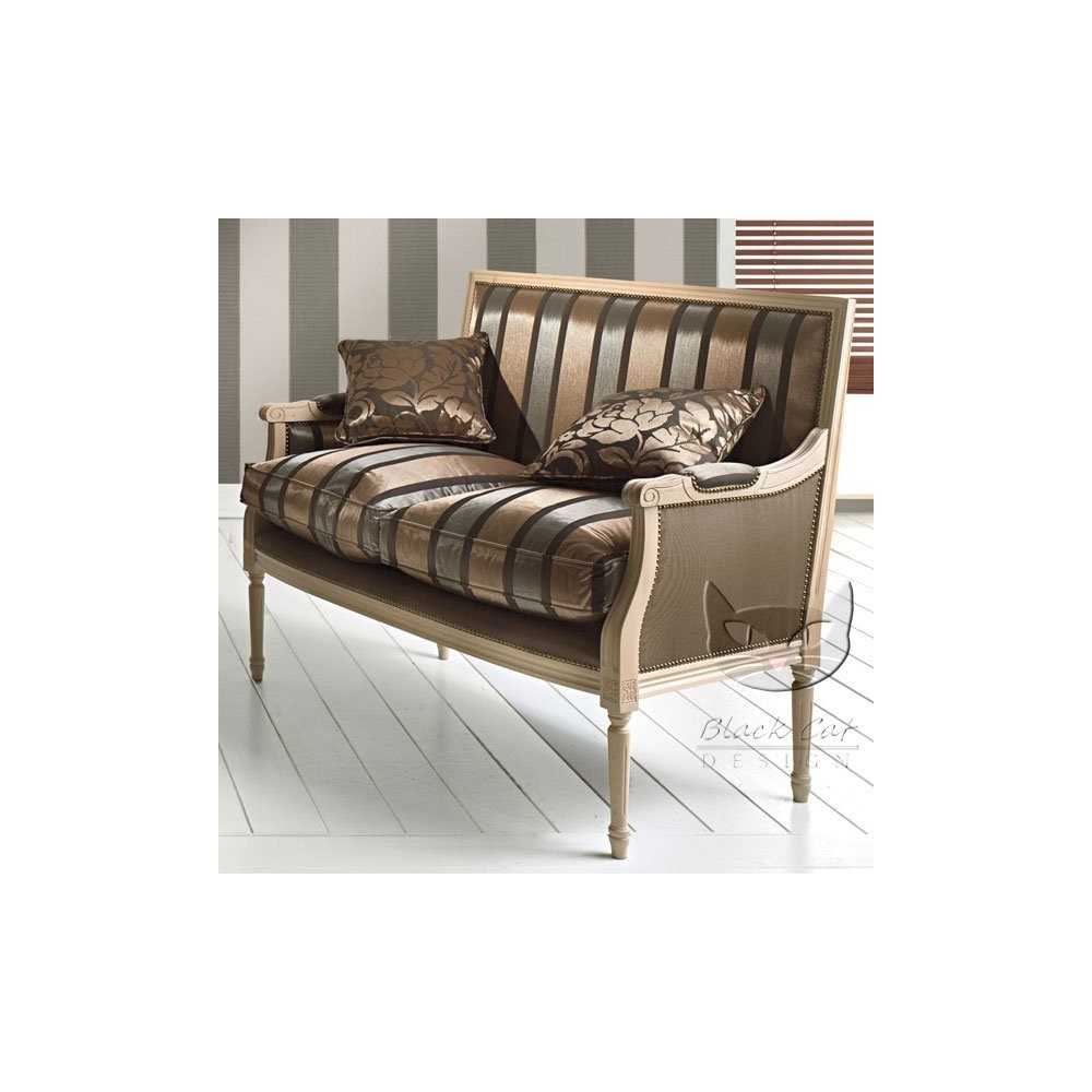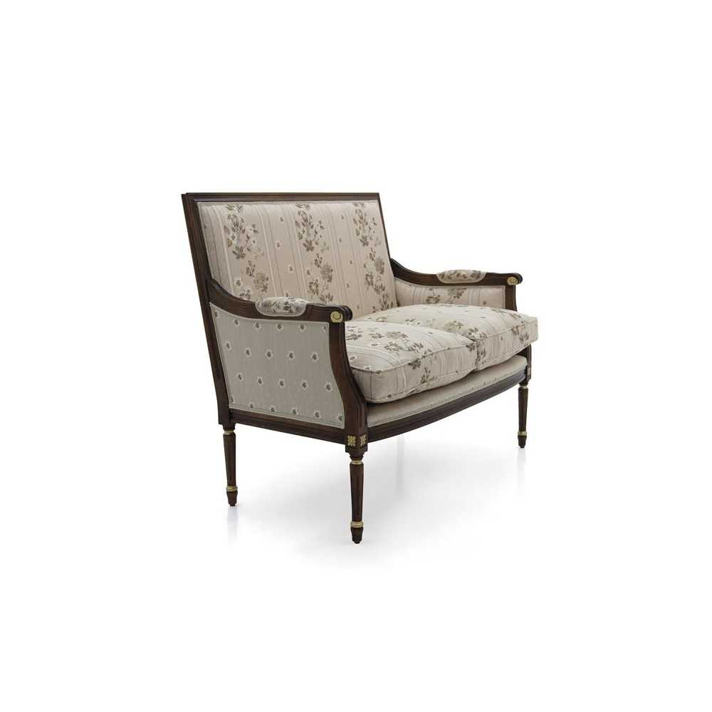 Kanapa Luigi to niesamowita propozycja do każdego wnętrza, stawiającego na bogate zdobienia. Jej konstrukcja przywodzi na myśl dekoracyjną ławkę, a szeroka rama oparcia, wykonana z drewna bukowego, zapewnia wysoką trwałość. O stabilność modelu dbają cztery mocne nóżki, zawierające efektowne elementy zdobnicze. Za komfort użytkowania kanapy odpowiada nie tylko wypełnienie, stworzone z pianki na pasach tapicerskich, ale i wygodne podłokietniki.