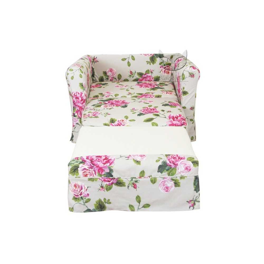 Prezentujemy malutką sofę Flower 110 w kwiaty z funkcją spania o szerokości całkowitej 110cm. Romantyczna kanapa w stylu vintage Flower 110 pasuje do salonu urządzonego w stylu prowansalskim i angielskim. Spodoba się miłośnikom romantycznych klimatów we wnętrzach. Tak niewielka sofa zmieści się do bardzo małego pomieszczenia, a przy tym jest niezwykle praktyczna – po rozłożeniu prezentuje powierzchnie do spania o wymiarach 80x200 cm. Będzie więc świetnym wyborem, jeśli potrzebujemy mebla wypoczynkowego, na którym będziemy mogli przenocować gości. Sofa Flower 110 posiada kwiecisty pokrowiec, który możemy całkowicie zdjęć i wyprać w pralce.