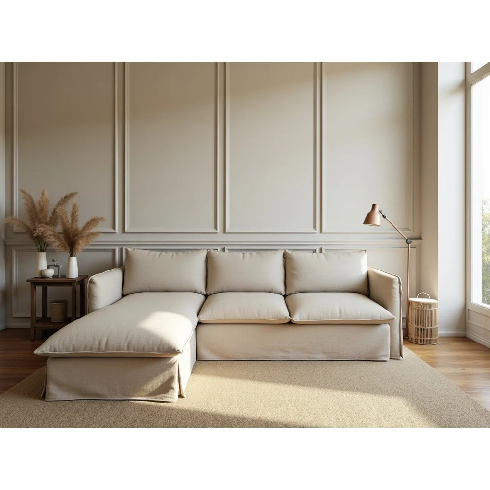 Patagonia sofa z leżanką 300×210 – lniana, z pierzem