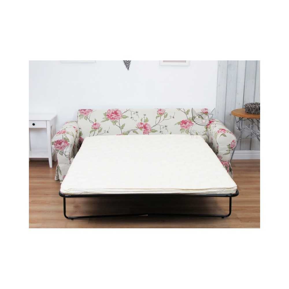 Fantastyczna i bardzo wygodna rozkładana sofa do spania Christine o szerokości całkowitej 188 cm, która będzie świetnym wyposażeniem już niewielkiego salonu. Szerokie boki sofy to znakomite i wygodne podłokietniki. Sofa w kwiaty Christine 188 spodoba się miłośniczkom romantycznych mebli w stylu „Dumy i uprzedzenia”. Producent wyposażył ją w możliwość całkowitego zdjęcia pokrowca, który łatwo wypierzemy w pralce, więc żadna plama nam niestraszna. Po rozłożeniu sofa Christine 188 oferuje powierzchnię do spania 113x180 cm przydatną, gdy trzeba przenocować gości. Mimo iż jest to sofa do spania ma bardzo wygodne siedziska i poduchowe oparcie.